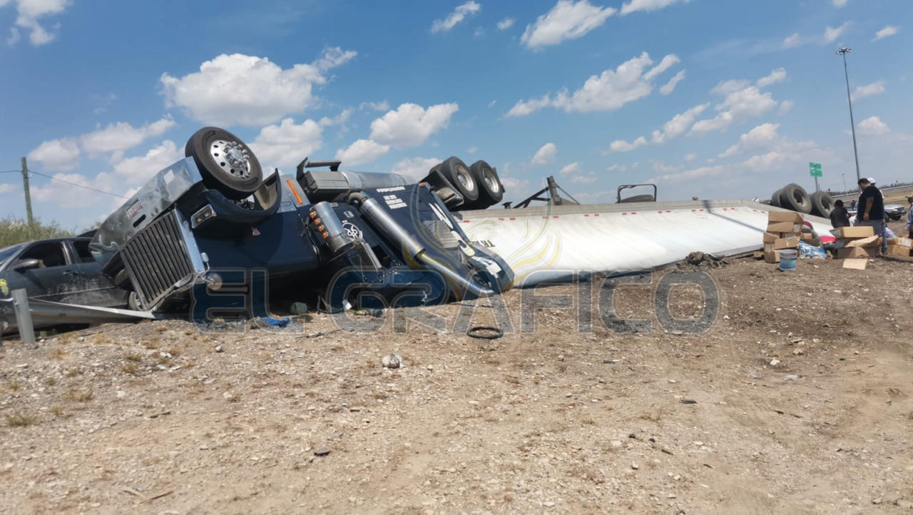 El accidente que dejó millonarias pérdidas económicas ocurrió cuando un tráiler tipo caja refrigerada cargado con varias toneladas de camarón se dirigía a esta Ciudad Capital procedente de la Ciudad de Reynosa.