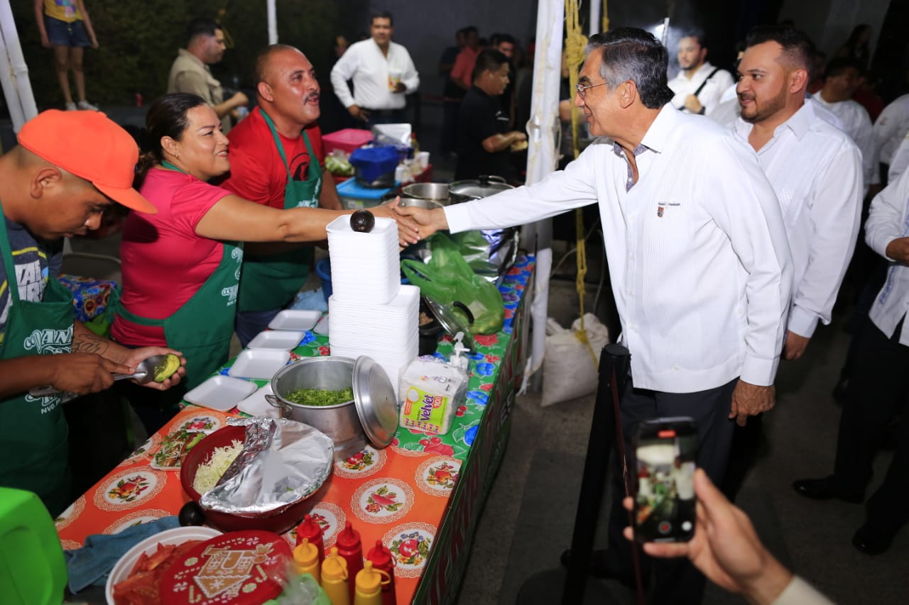 Posteriormente el gobernador, acompañado de integrantes de su gabinete, entre ellos el secretario general de Gobierno, Héctor Joel Villegas González, la secretaria de Finanzas, Adriana Lozano Rodríguez y el secretario de Obras Públicas Pedro Cepeda Anaya, hizo un recorrido por la muestra gastronómica que se instaló en la Plaza Juárez y en la cual se compartió con las familias tamaulipecas, una muestra de platillos típicos, aunado a que disfrutaron de la presencia del grupo musical Los Norteños de Río Bravo.