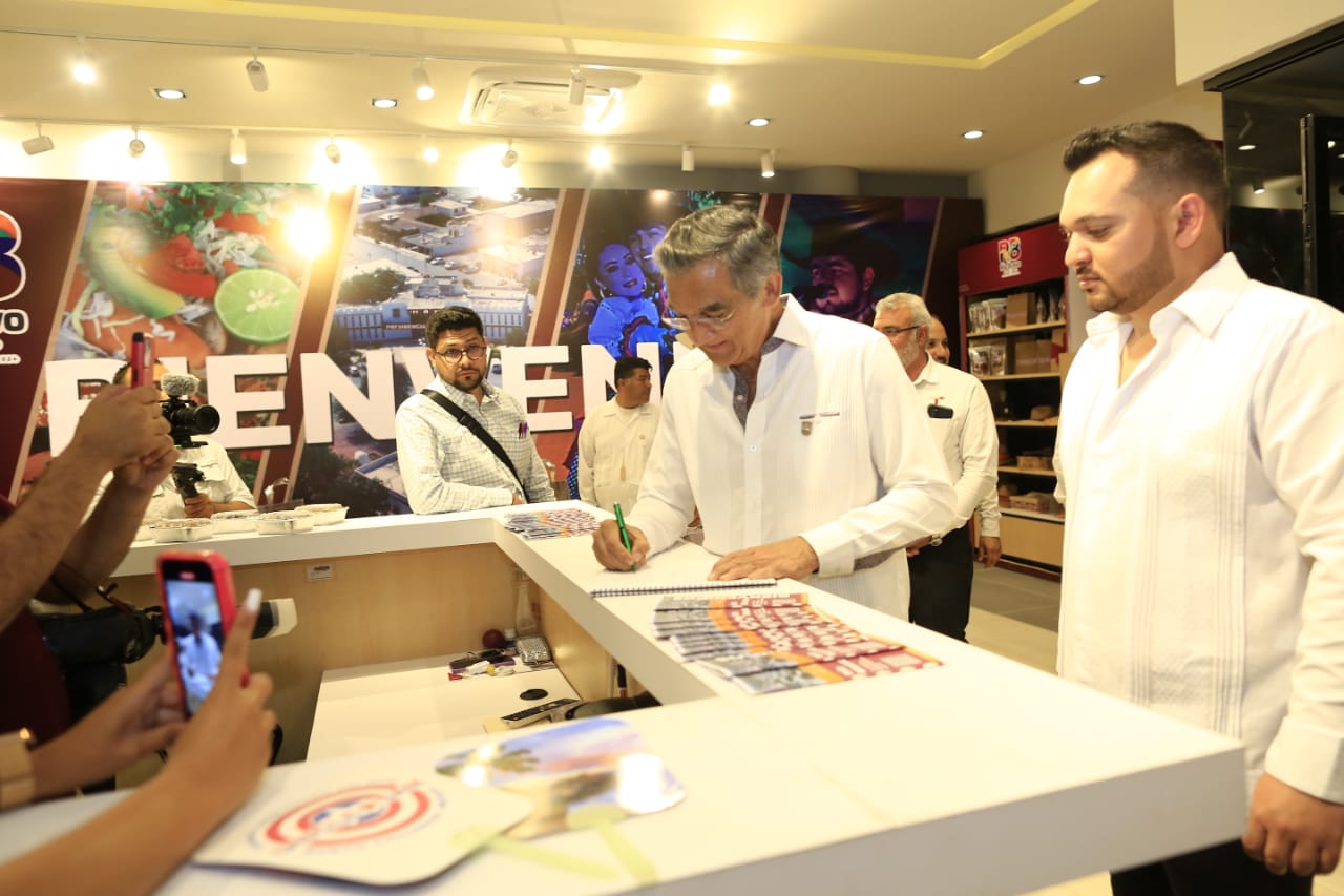 Acompañado del presidente municipal de Río Bravo, Joel Eduardo Yáñez Villegas y del secretario de Turismo estatal, Benjamín Hernández Rodríguez y el gobernador hizo un recorrido en este espacio situado en el edificio del Centro Cultural Tamaulipas, en el cual apreció la riqueza cultural, artesanal, comercial y empresarial de este municipio.