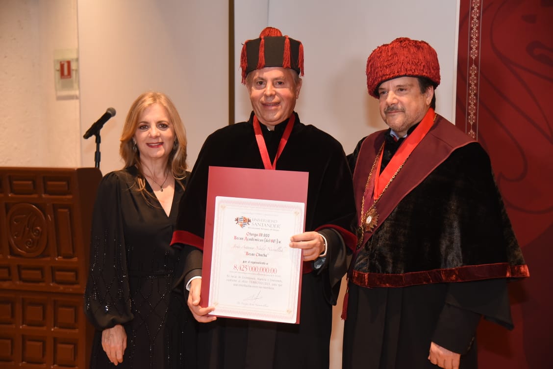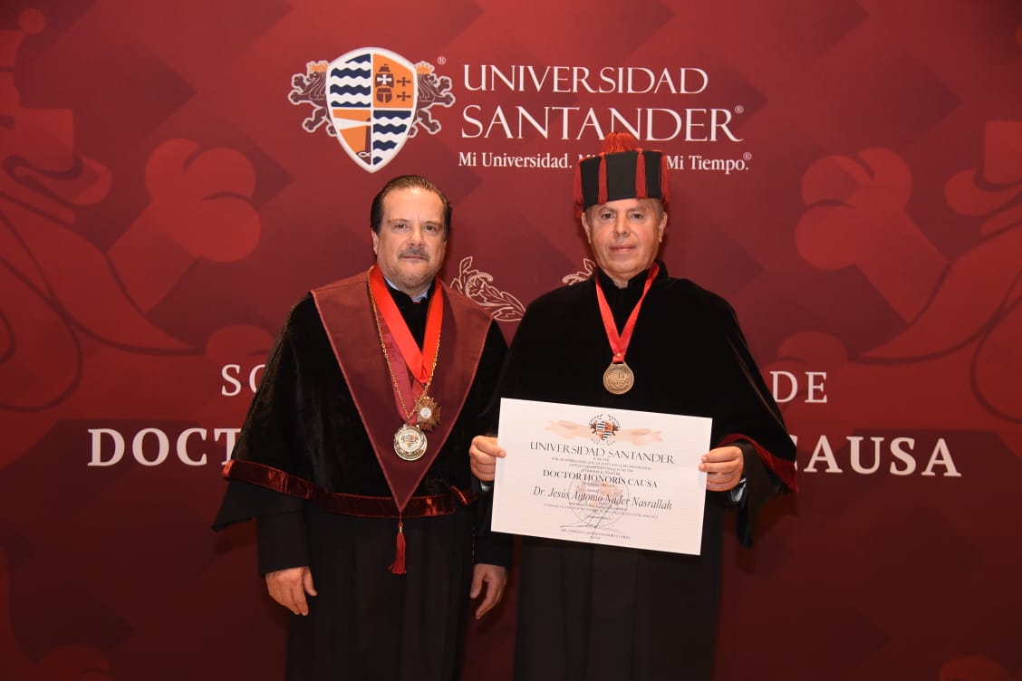 En reconocimiento a su importante trayectoria y méritos en la educación, el Presidente Municipal Chucho Nader recibió este jueves, el título de Doctor Honoris Causa en Administración por parte de la Universidad Santander.