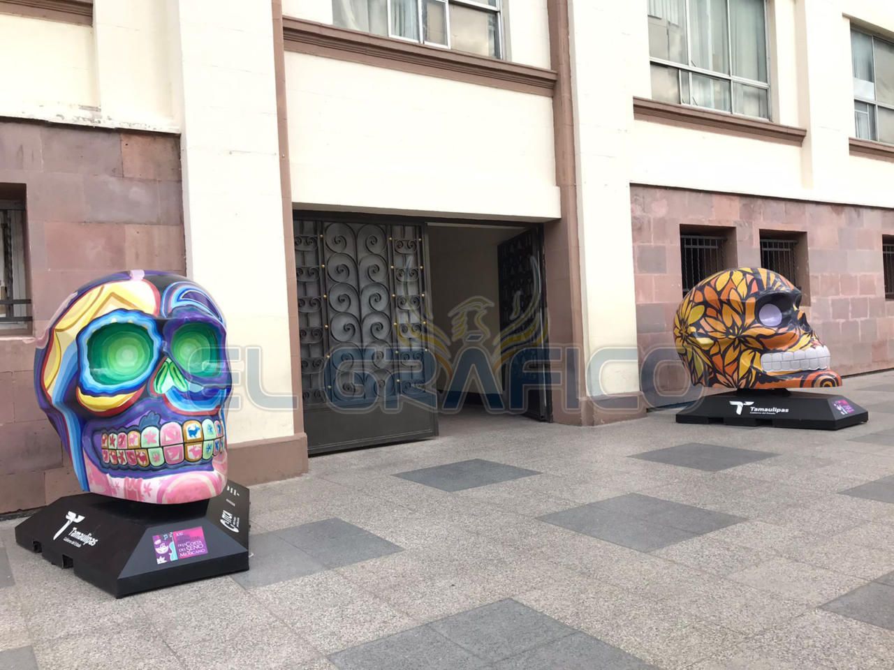 Cabe señalar que los 18 Mexicráneos estarán expuestos en Palacio de Gobierno, el Centro Cultural Tamaulipas, Plaza Juárez y la Torre Bicentenario.