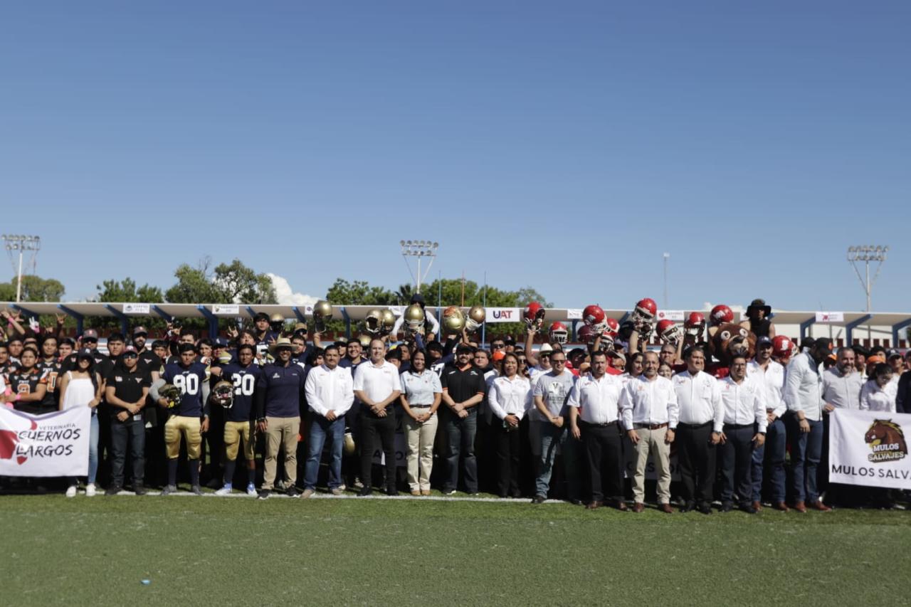 El Rector de la Universidad Autónoma de Tamaulipas (UAT), C.P. Guillermo Mendoza Cavazos, inauguró la Temporada 2023 de la Liga Universitaria de Fútbol Americano (LUFA UAT) Categoría Novatos, en el escenario del Estadio Olímpico Eugenio Alvizo Porras del Centro Universitario Victoria.