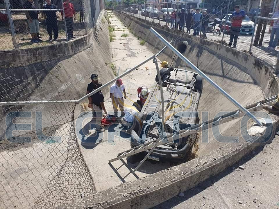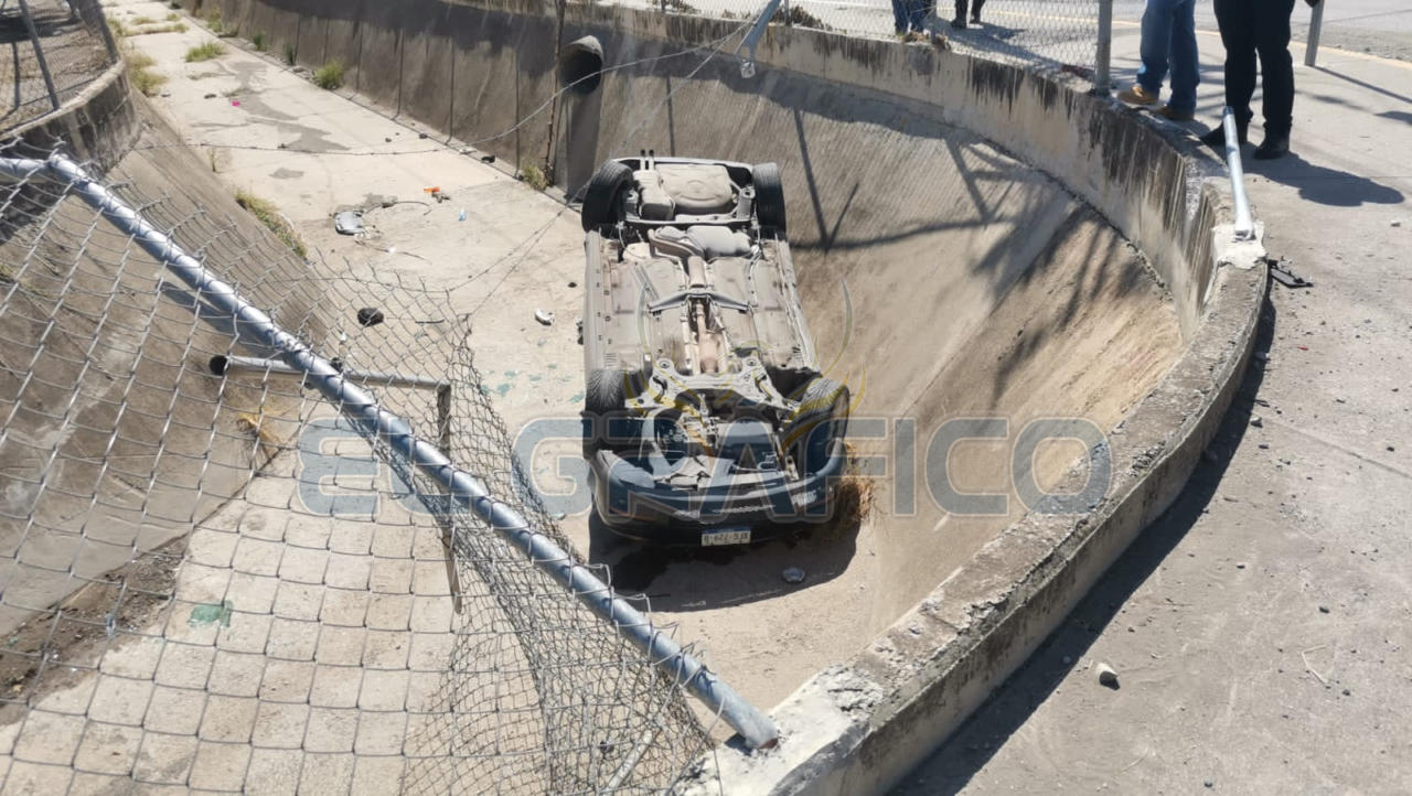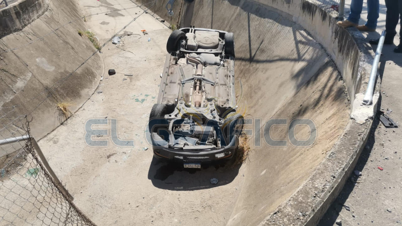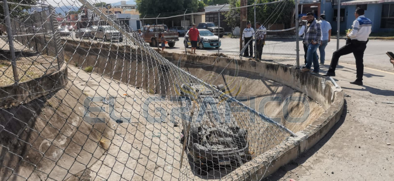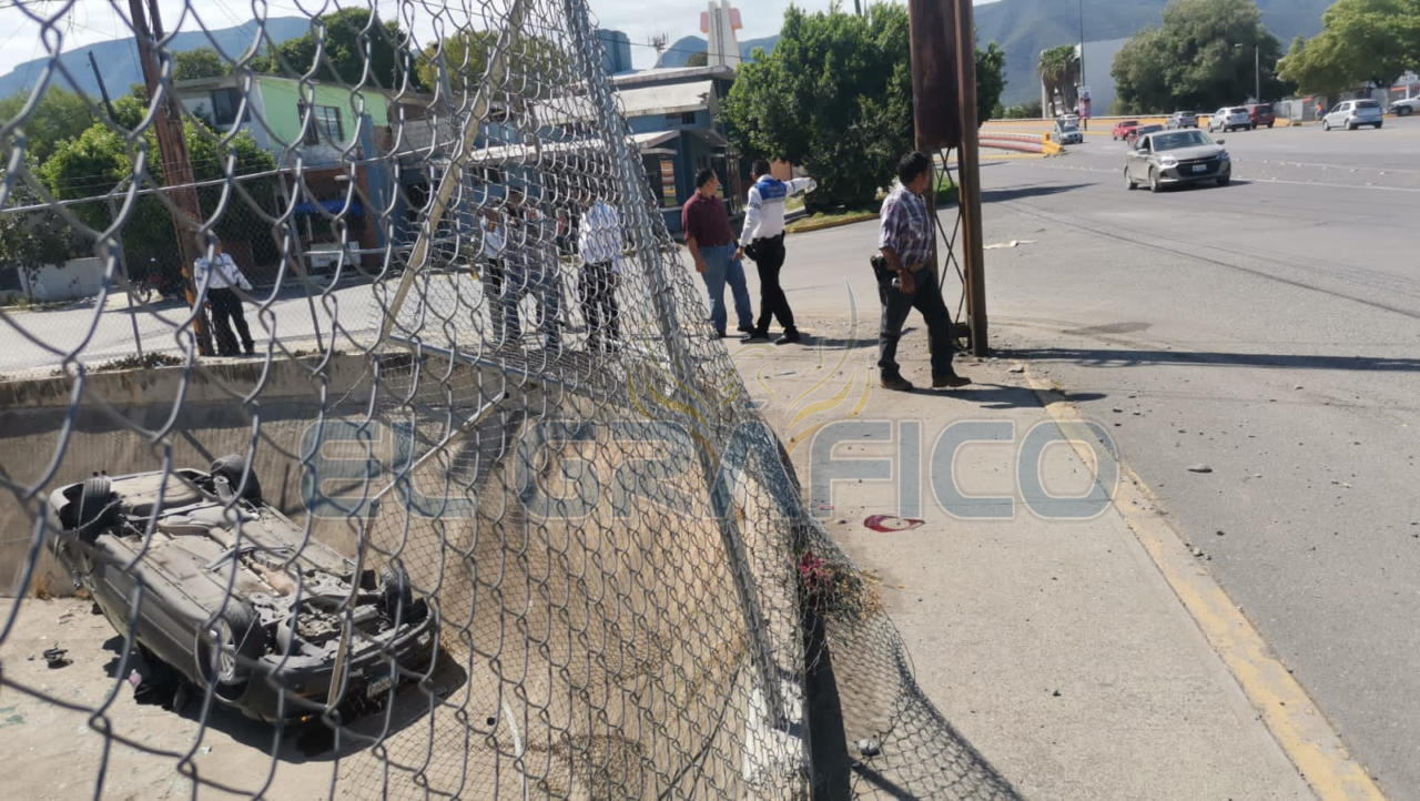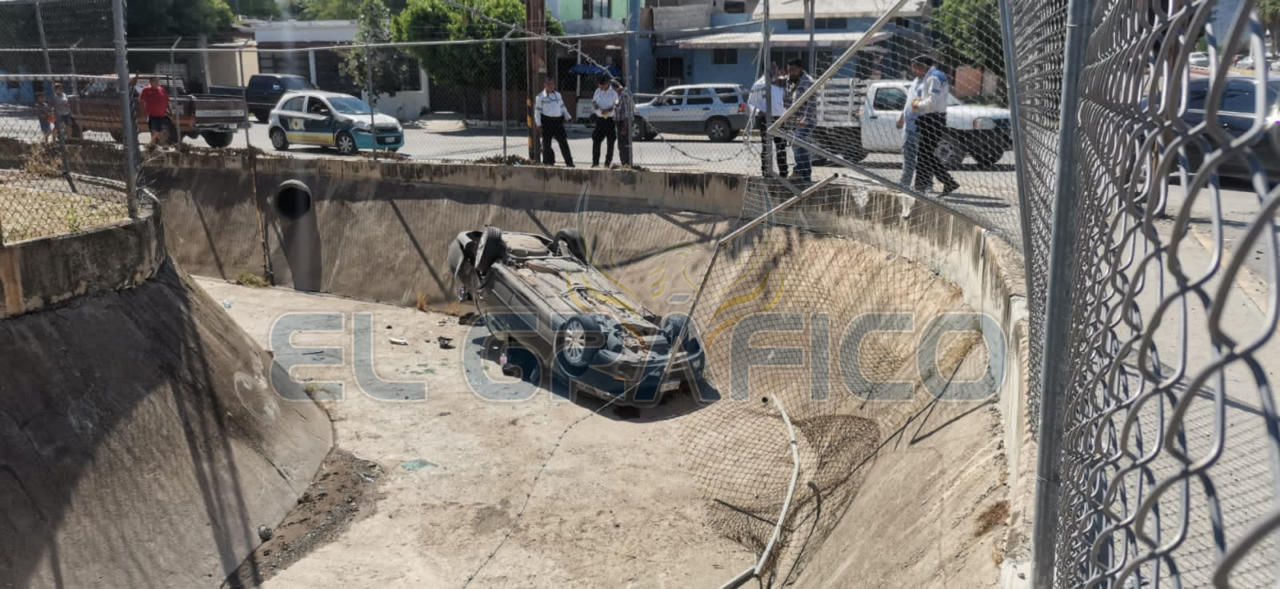 Al salir de la "joroba" el conductor del Jetta perdió el control del volante y al desviar su trayectoria hacia su lado derecho se impactó contra una cerca metálica para posteriormente caer a un dren pluvial que se encuentra en la Plaza Comercial Adelitas ubicada sobre el bulevar Adolfo López Mateos y la calle Jesús Elías Piña.
