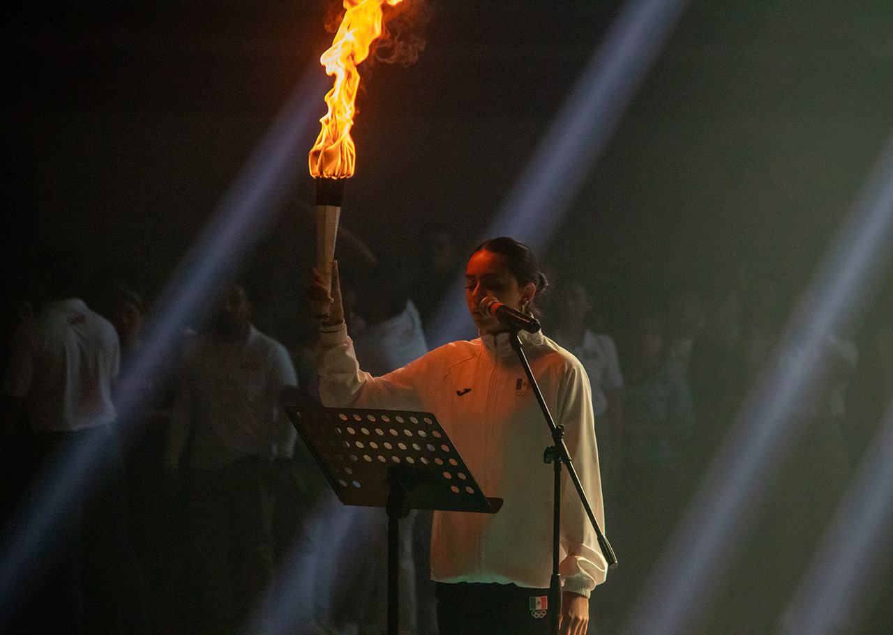 El juramento deportivo y el encendido del pebetero estuvo a cargo de la seleccionada nacional de esgrima y estudiante de la UAT, Regina Azeneth Pedraza Lerma, quien conminó a sus compañeros a competir con lealtad, respeto y caballerosidad bajo el verdadero espíritu deportivo.