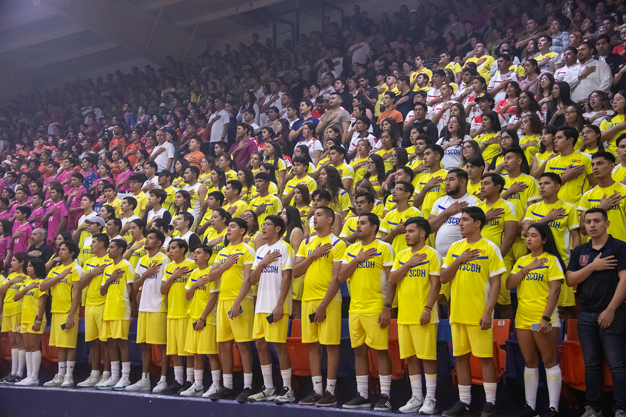 El Gimnasio Multidisciplinario se vistió de gala para recibir a los contingentes de estudiantes deportistas que desfilaron acompañados por los directores de las Unidades Académicas y Facultades.