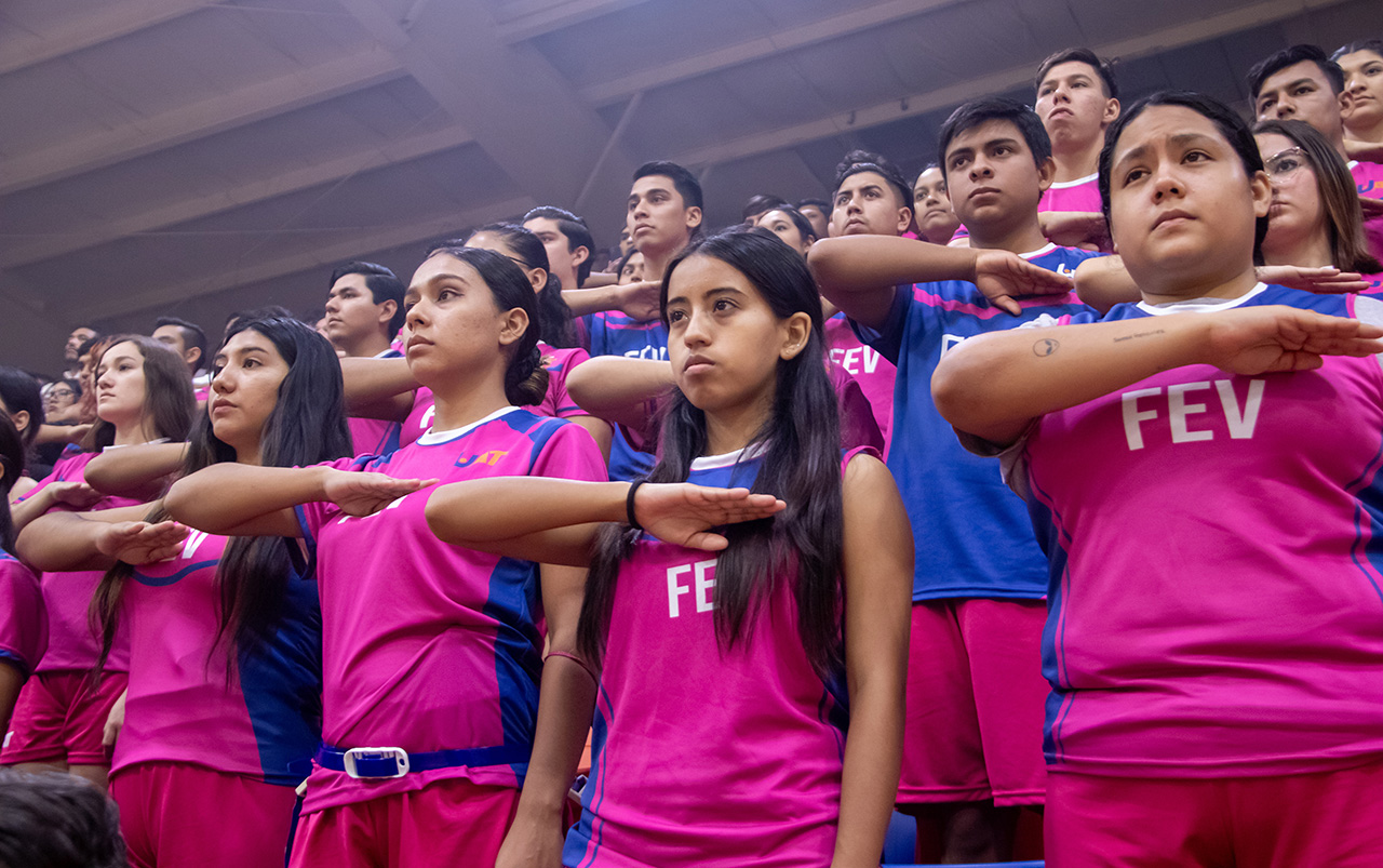 En medio de una gran fiesta deportiva universitaria, el C.P. Guillermo Mendoza Cavazos, rector de la Universidad Autónoma de Tamaulipas, puso en marcha el torneo “Vida UAT Interfacultades 2023” ante cientos de estudiantes en el Gimnasio Multidisciplinario del campus Victoria.