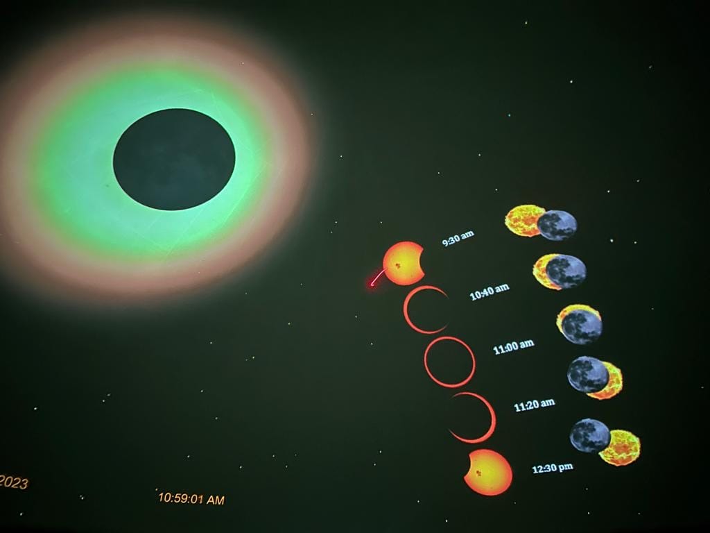 En las instalaciones del planetario conocieron el eclipse en cada una sus fases con proyecciones en tiempo real, con lo que todos quedaron fascinados, con el eclipse en su punto máximo que se reportó a las 11:01 de la mañana.