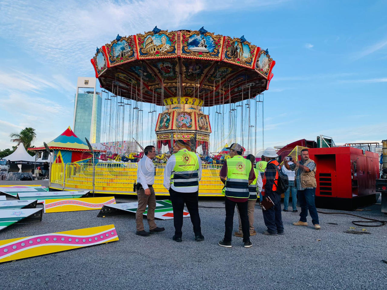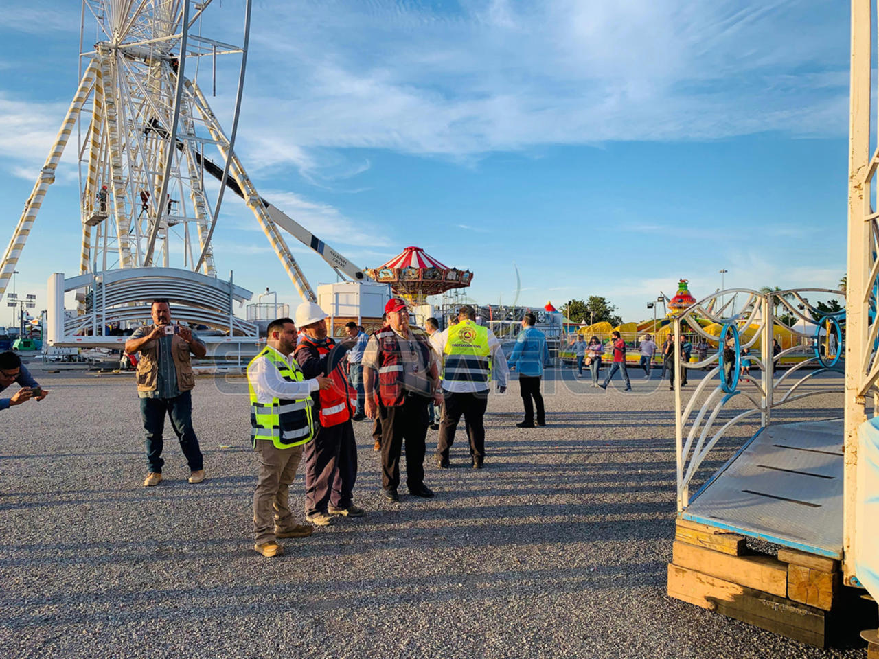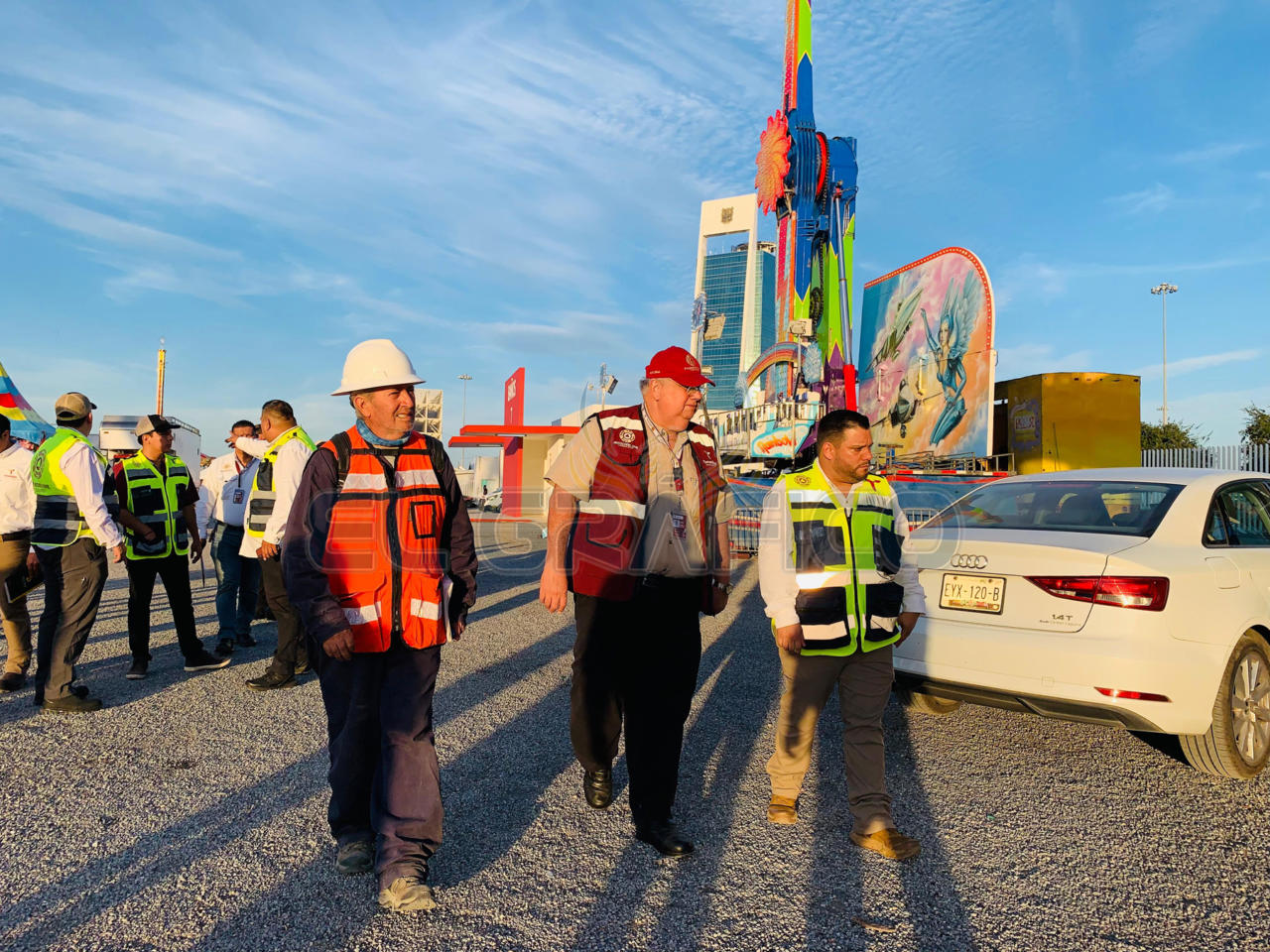 Encabezada por el director de Protección Civil del Gobierno del Estado Luis Gerardo González de la Fuente, en el recorrido de supervisión participaron elementos del área de inspecciones y el responsable de la empresa que instaló los juegos mecánicos, entre los que destaca la rueda de la fortuna más grande de Latinoamérica con 35 metros de altura.