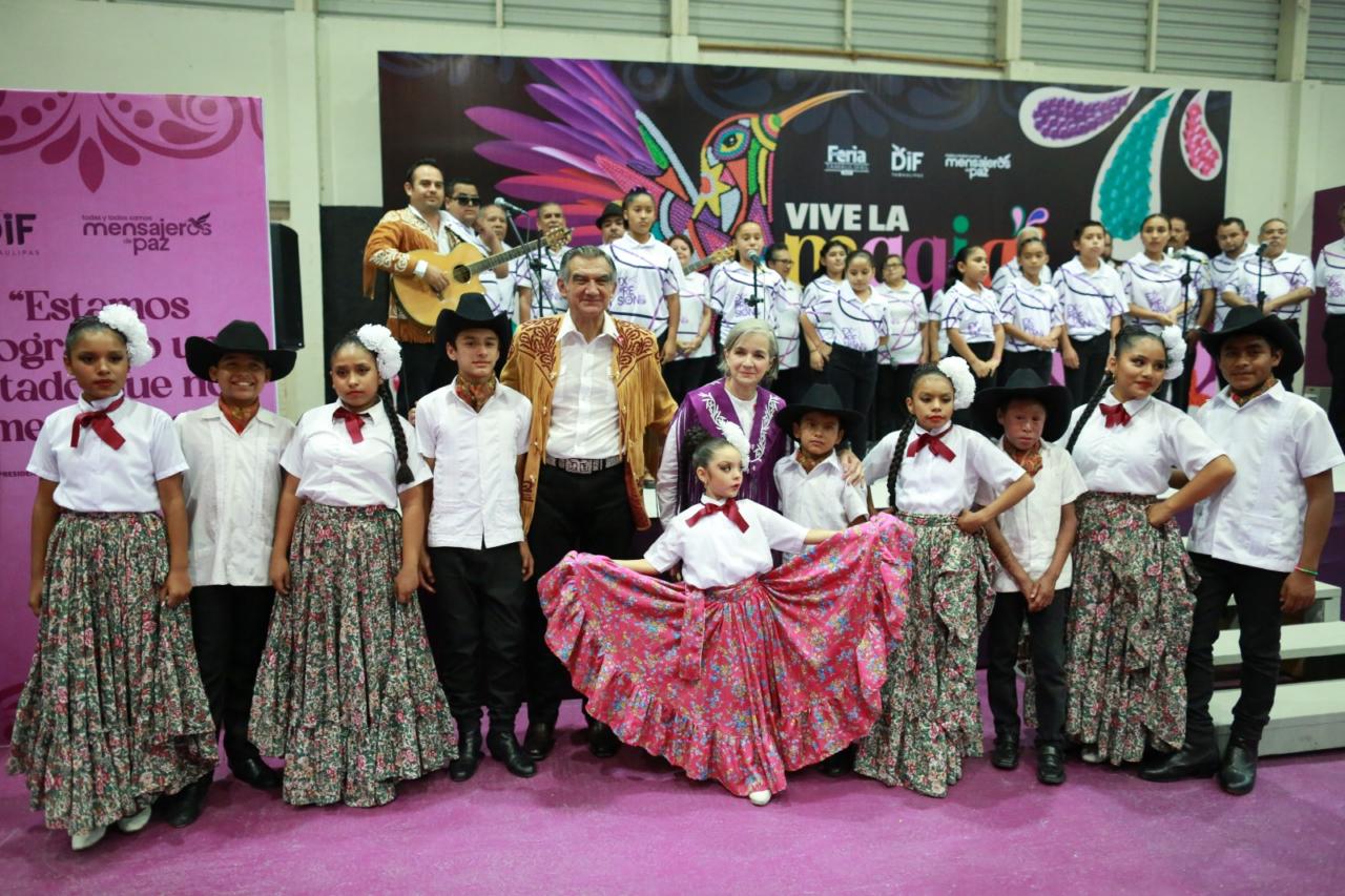 Al inaugurar la Feria Tamaulipas 2023, la tarde de este jueves, acompañado por la doctora María Santiago de Villarreal, presidenta del Sistema DIF Tamaulipas, así como por presidentes y presidentas municipales, legisladores, empresarios, mandos militares, representantes de la sociedad civil y miles de familias, el gobernador del estado convocó a aprovechar estas oportunidades para resarcir el tejido social.