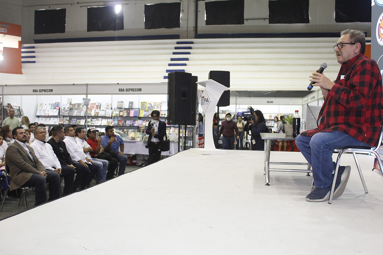 El escritor y titular del Fondo de Cultura Económica (FCE), Paco Ignacio Taibo II, participó en la Feria Universitaria del Libro 2023 de la Universidad Autónoma de Tamaulipas (FUL UAT) en cuyo marco reconoció la importancia de este foro para el fortalecimiento de la promoción de la lectura en nuestro país.