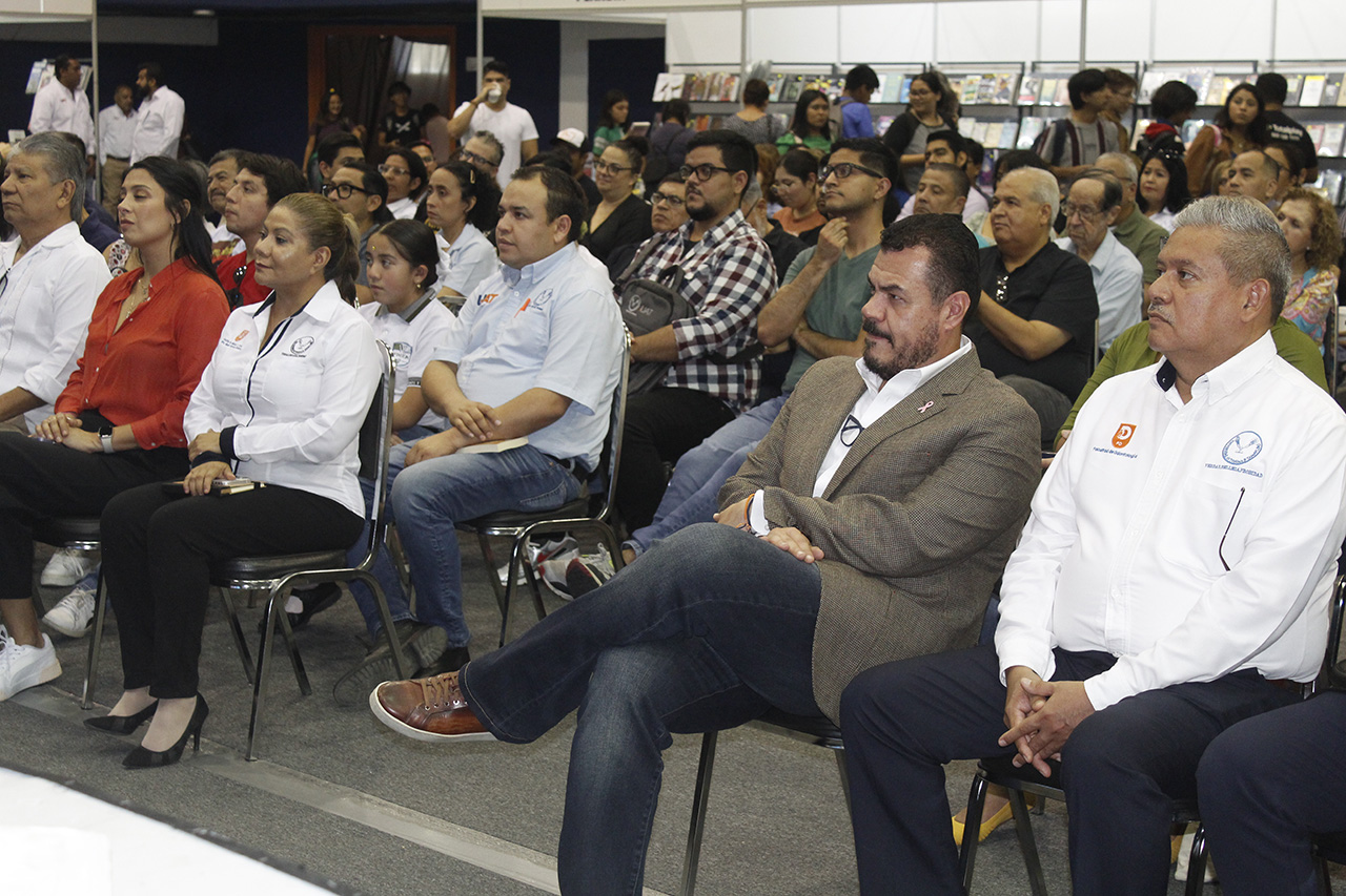 Presente en el evento, el escritor Bruno Arpaia compartió algunas reflexiones sobre su trabajo literario, y al concluir, el rector Guillermo Mendoza le hizo entrega de un reconocimiento por participar con la UAT en este importante espacio de difusión de la literatura y promoción de la lectura.