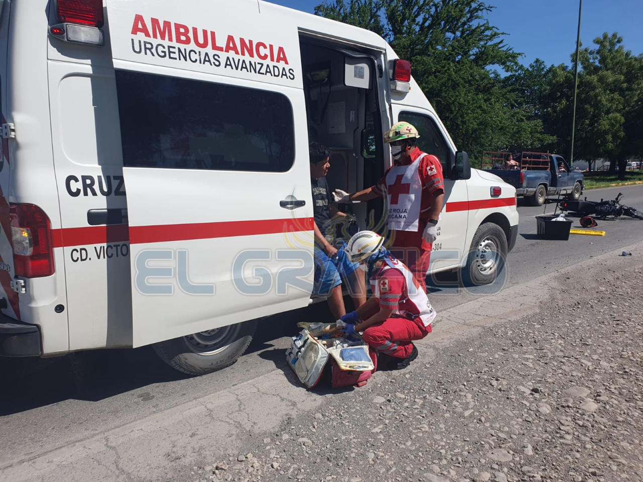 Testigos del accidente al ver al motociclista lesionado hicieron el llamado al número de emergencias 911 acudiendo paramédicos de Cruz Roja Mexicana.