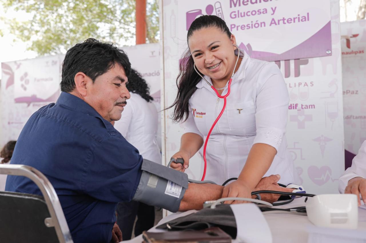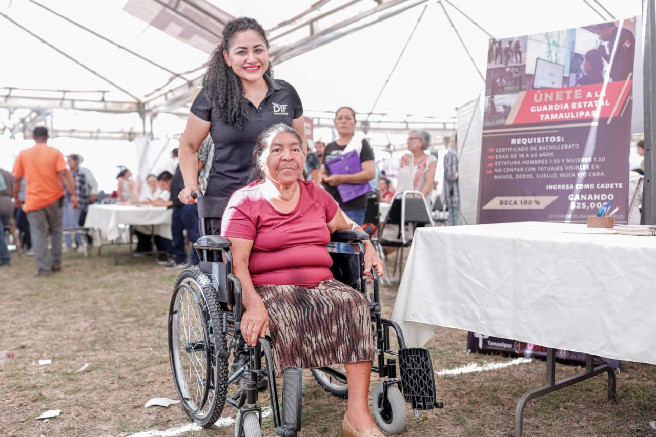 Aldama, Tamaulipas. En el ejido Nuevo Progreso de este municipio, se dieron cita los representantes de las diferentes dependencias del gobierno estatal y federal, coordinados por el Sistema DIF Tamaulipas que preside la doctora María Santiago de Villarreal, para ofrecer los servicios de la brigada asistencial “Transformando Familias”