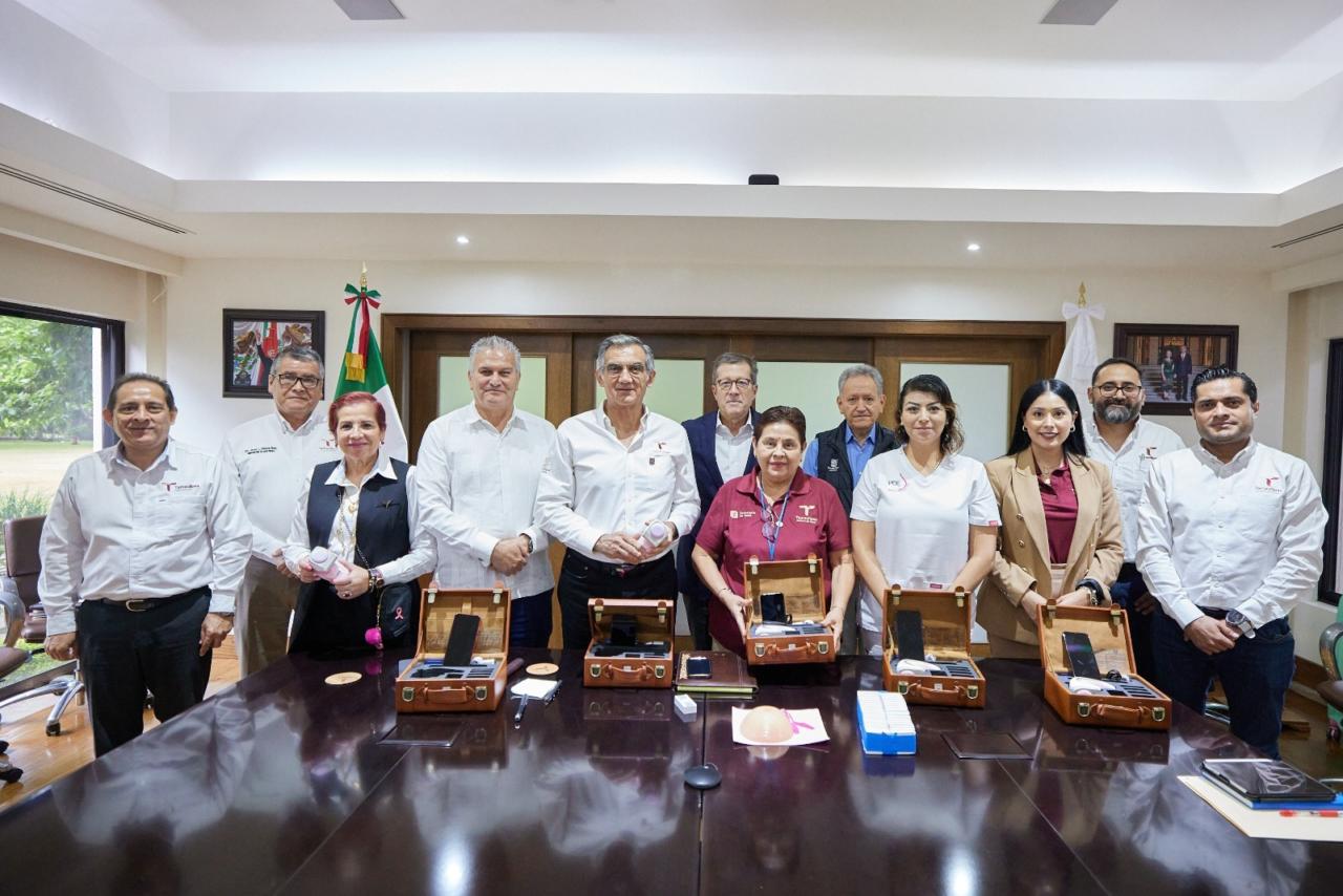 Al recibir en Casa Tamaulipas, al director general de la empresa Prevención y Detección Especializada (PDE), Gustavo Varela Gutiérrez, quien realizó la donación de cinco equipos del dispositivo portátil conocido como iBreastExam, con los cuales se reforzarán las jornadas médicas para realizar estudios para la detección de tumoraciones sólidas de mama, el gobernador hizo énfasis en las estadísticas que han permitido a Tamaulipas reducir la tasa de mortalidad al pasar de 25.0 por ciento en 2022 a 15.4 por ciento en el presente año.