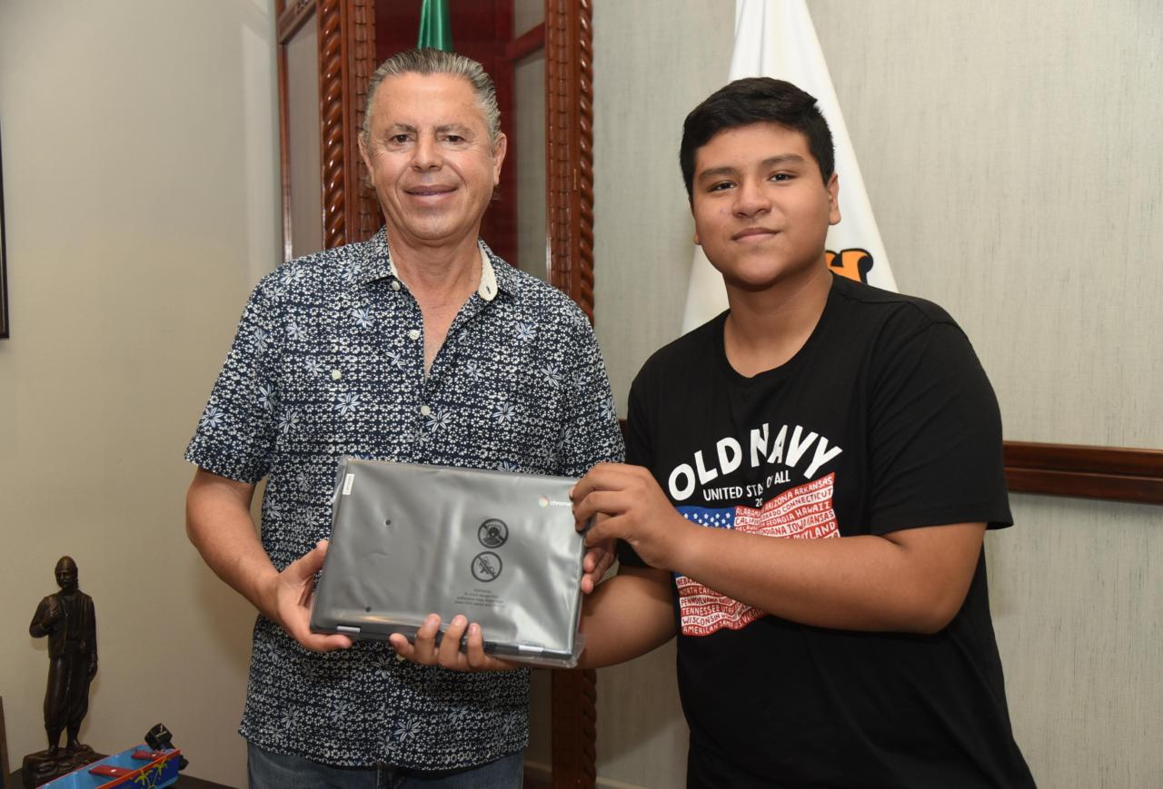 Lo anterior fue expresado por el Presidente municipal Chucho Nader luego de entregar computadoras personales, uniformes y útiles escolares a un grupo de alumnos de la escuela primaria "José Rosas Moreno" y de la Secundaria "Francisco Nicodemo".