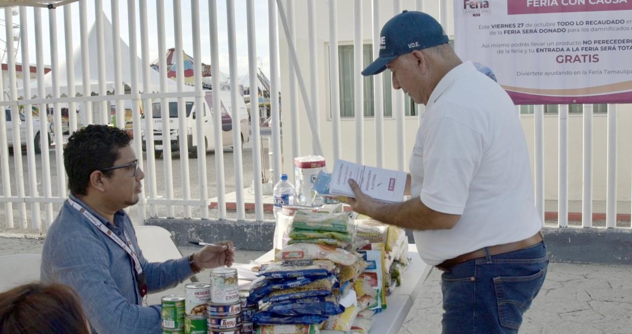 Ciudad Victoria, Tamaulipas. - En respuesta a la convocatoria del gobernador Américo Villarreal a unirse en solidaridad con la población de Guerrero afectada por el huracán Otis, 2 mil 283 tamaulipecos se solidarizaron y acudieron a la Feria Tamaulipas para entregar productos no perecederos que pudieron canjear por boletos de entrada.