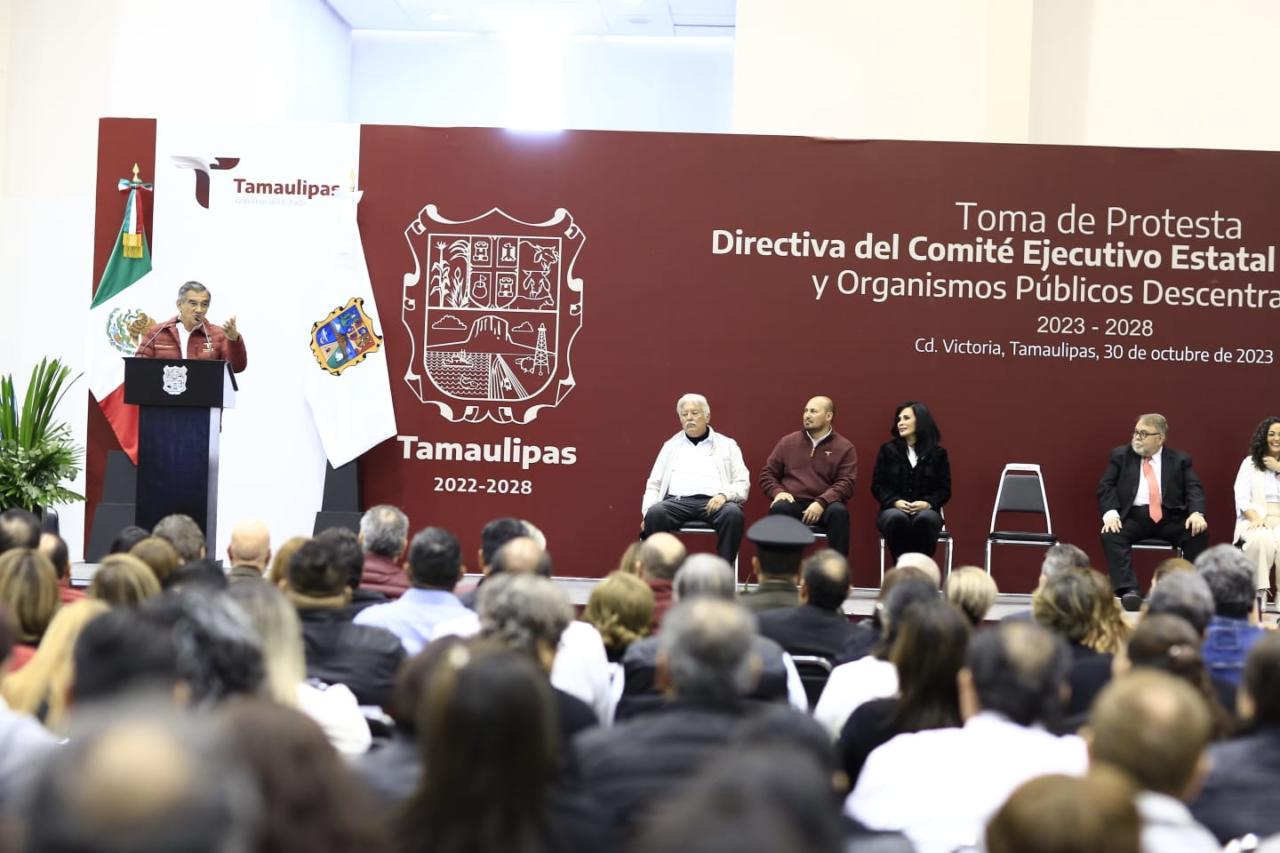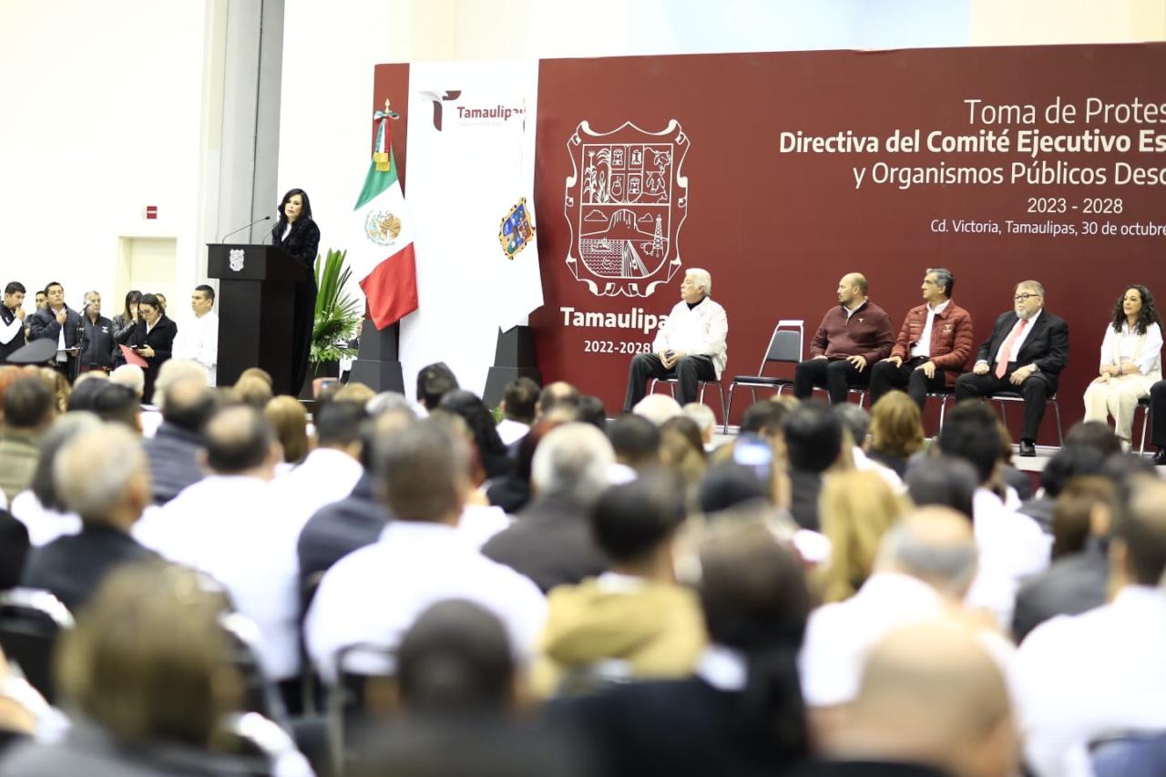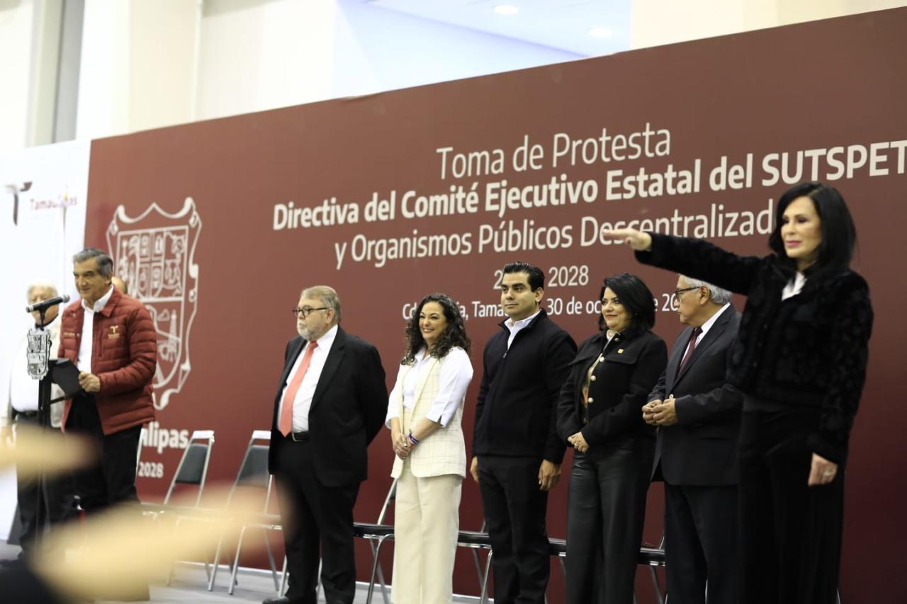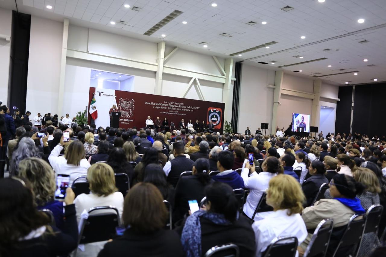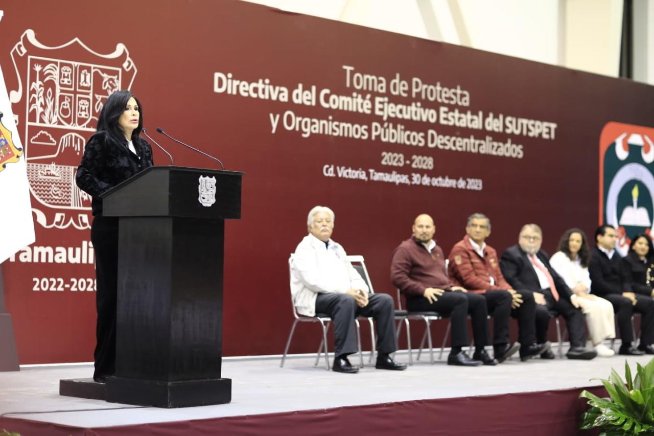 Al presidir la toma de protesta del Comité Ejecutivo del Sindicato Único de Trabajadores al Servicio de los Poderes del Estado de Tamaulipas (SUTSPET), para el periodo 2023-2028, encabezados por la secretaria general, Blanca Valles Rodríguez, el gobernador aseguró que la puntual aplicación de la norma en la entrega de bases sindicales y el respeto a la relación con el sindicato impactará de manera directa en la calidad de la prestación de servicios a la sociedad tamaulipeca.