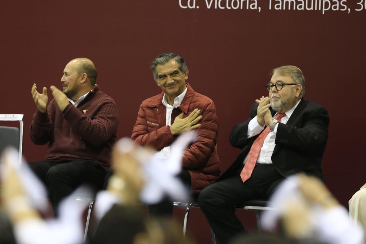 Acompañado por los titulares de los Poderes Legislativo y Judicial, la diputada Úrsula Salazar Mojica y el magistrado David Cerda Zúñiga, el jefe del Ejecutivo Estatal destacó que en el Gobierno de la Transformación todas las reformas jurídicas que promovió a su paso por el Senado de la República son ahora una realidad en Tamaulipas y puso de ejemplo, la nueva política laboral que en apego y congruencia con el espíritu de la reforma de 2019, ha permitido elecciones democráticas y transparentes en los sindicatos de Salud, de Trabajadores de la Educación y del SUTSPET, mediante voto personal, libre y directo.