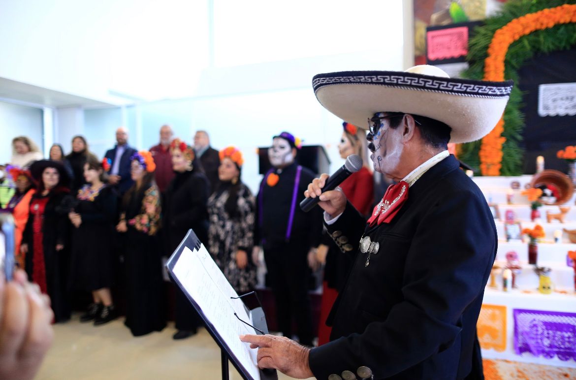 Con un desfile de catrinas y catrines, la lectura de las tradicionales calaveritas y la interpretación de canciones alusivas al Día de Muertos, la Torre Bicentenario se llenó de color y alegría este martes 31 de octubre, con la entusiasta participación de las y los trabajadores.