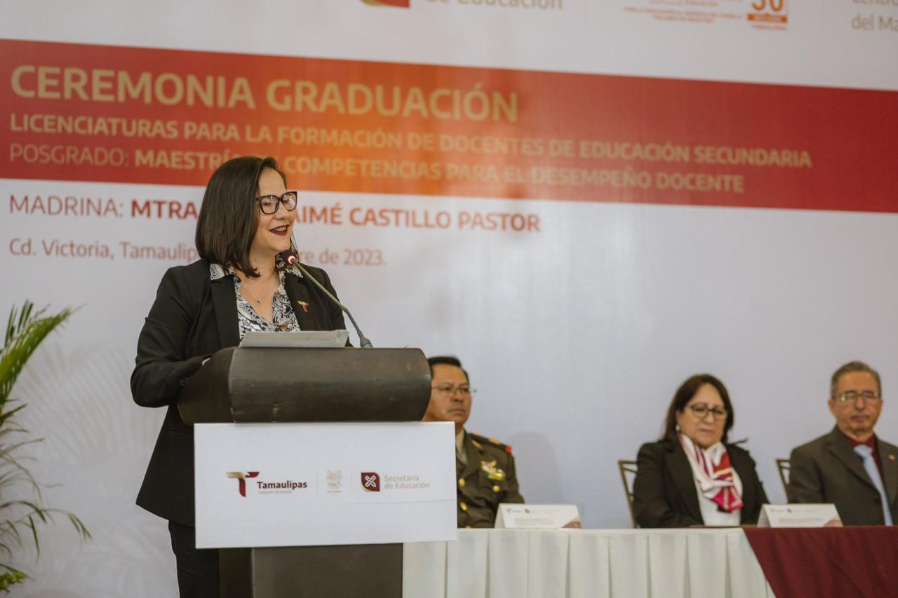 “Les felicito y me enorgullezco al ser testigo de su interés y compromiso académico, de su voluntad y trabajo en hacer de nuestro estado un mejor lugar para vivir. Por eso es trascendental que más docentes como ustedes continúen sus trayectos formativos, estoy segura de que no sólo han adquirido más conocimientos sino que se han cuestionado muchos de los que ya tenían y se los han replanteado”.