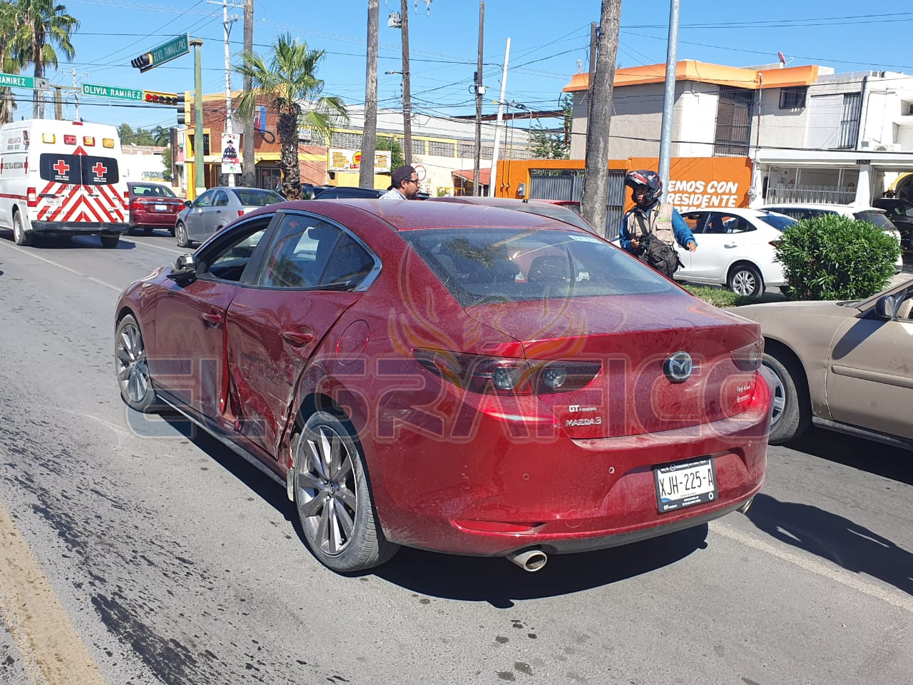 Al llegar al crucero con la calle Olivia Ramírez el vehículo Jetta se impactó contra la parte posterior de un automóvil de la marca Chevrolet Chevy Monza que estaba haciendo alto y que era tripulado por una mujer de la tercera edad.