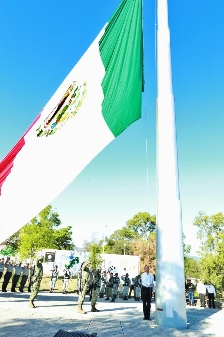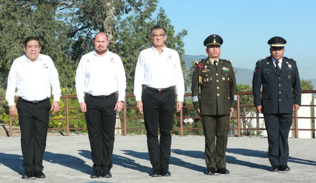 Al presidir la ceremonia cívica de honores y luego de izar la bandera monumental en el Parque La Loma, de esta capital, junto a los mandos de la Secretaría de la Defensa Nacional y de la Guardia Nacional, el gobernador hizo un reconocimiento al compromiso y la contribución que realizan las fuerzas armadas para garantizar la seguridad y la paz de las familias en Tamaulipas.
