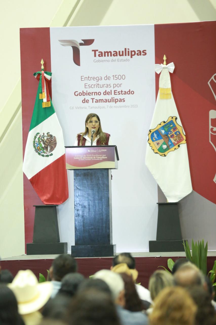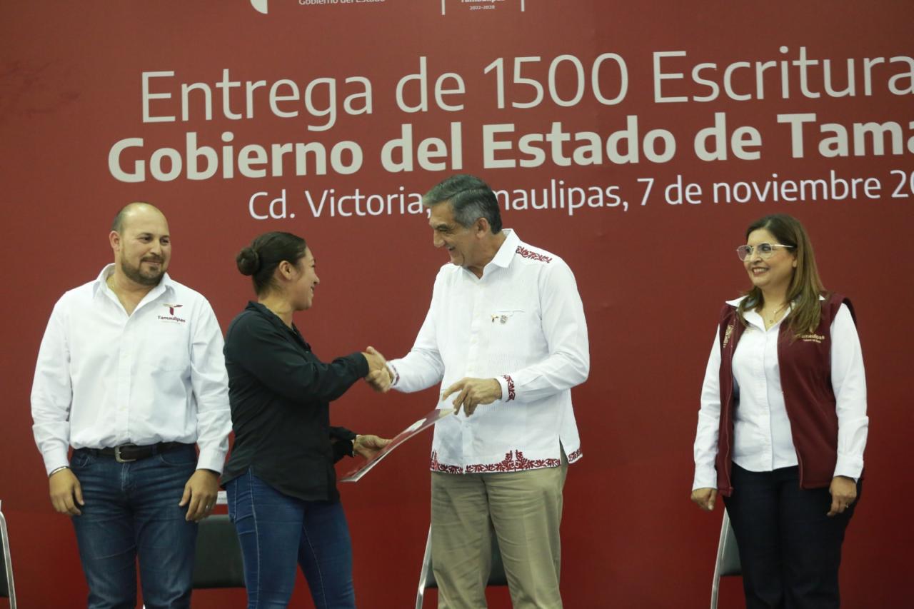 “Nada es más tranquilizante para un jefe o una jefa de familia que poder asegurarle a sus hijos que tendrán un lugar seguro para vivir y que cuentan con un documento 100 % legal que lo avala y lo protege de cualquier posible riesgo, por ello hoy se entregarán a cientos de familias tamaulipecas sus escrituras”, manifestó.