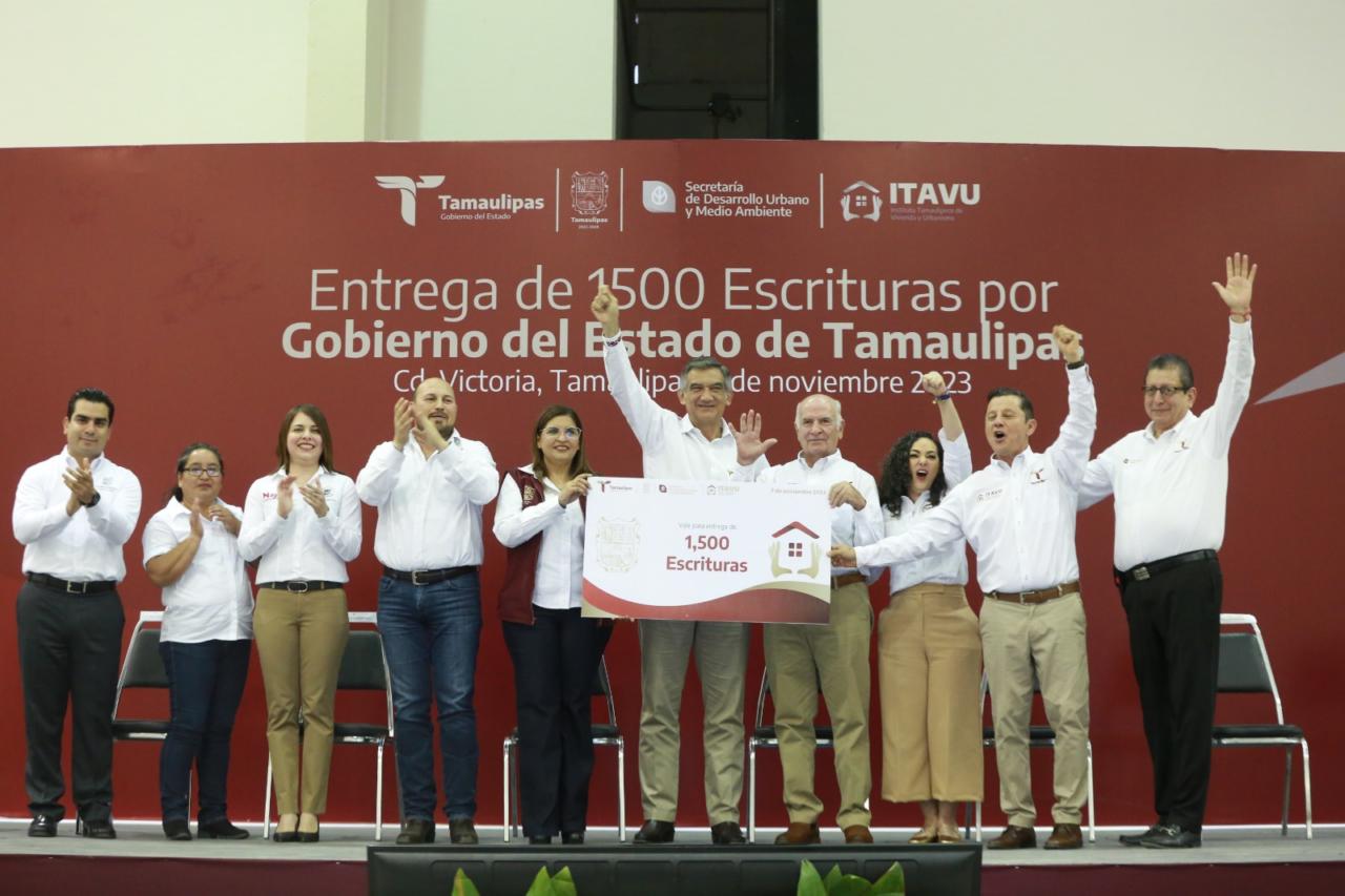 Agregó que el ITAVU continuará desempeñando su labor para elevar los niveles de bienestar de la población tamaulipeca no solo con escrituras, sino también con una importante cantidad de programas como la regularización de la tenencia de la tierra, los cuartos rosas, los tinacos, la pintura en fachadas, el ahorro previo para la adquisición de lotes, el ITAVU en tu colonia, la adquisición de reservas, la urbanización progresiva, la rehabilitación de centros turísticos, la condonación de intereses y otros programas más de apoyo a las clases más vulnerables y con necesidad de ayuda en Tamaulipas.