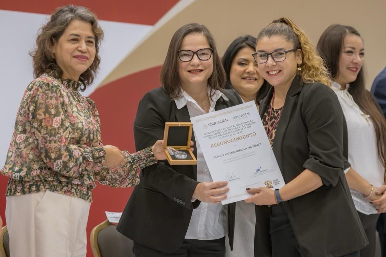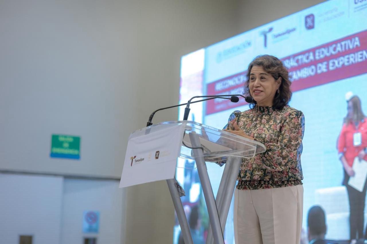 Al hacer uso de la palabra, la secretaria de Educación, Lucía Aimé Castillo Pastor, agradeció a la secretaria de Educación Pública en el país, Leticia Ramírez Amaya, y al USICAMM por su confianza en Tamaulipas, para ser sede de la entrega de medallas y reconocimientos a las y los docentes de los seis estados, obtenidos por sus prácticas educativas que, mediante la innovación y la creatividad destacan en el apoyo para la mejora del cumplimiento del logro académico por parte de las y los estudiantes.