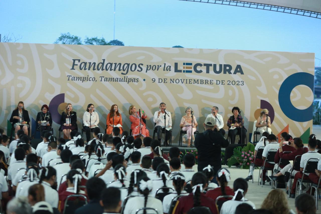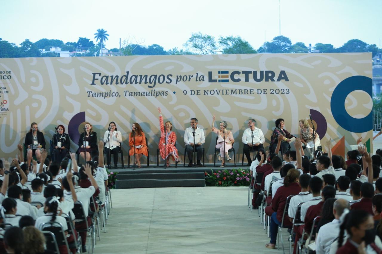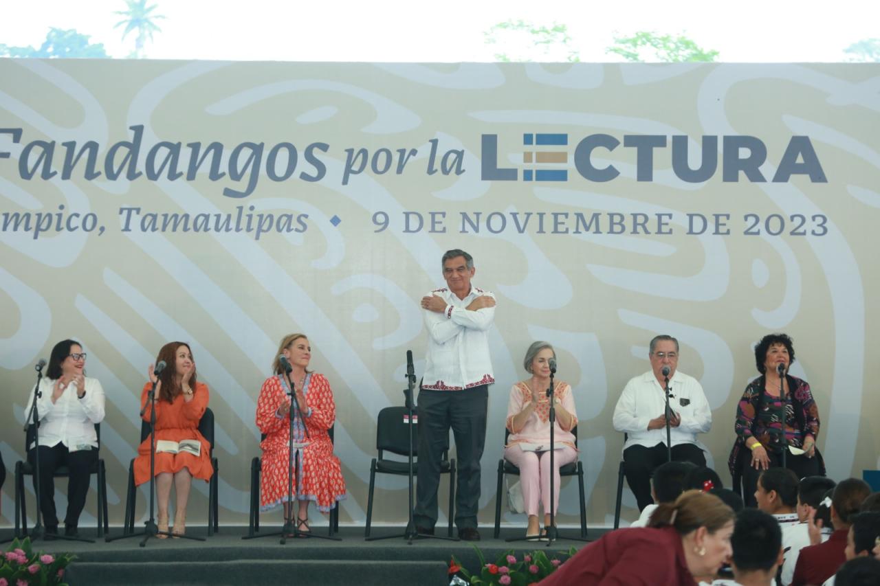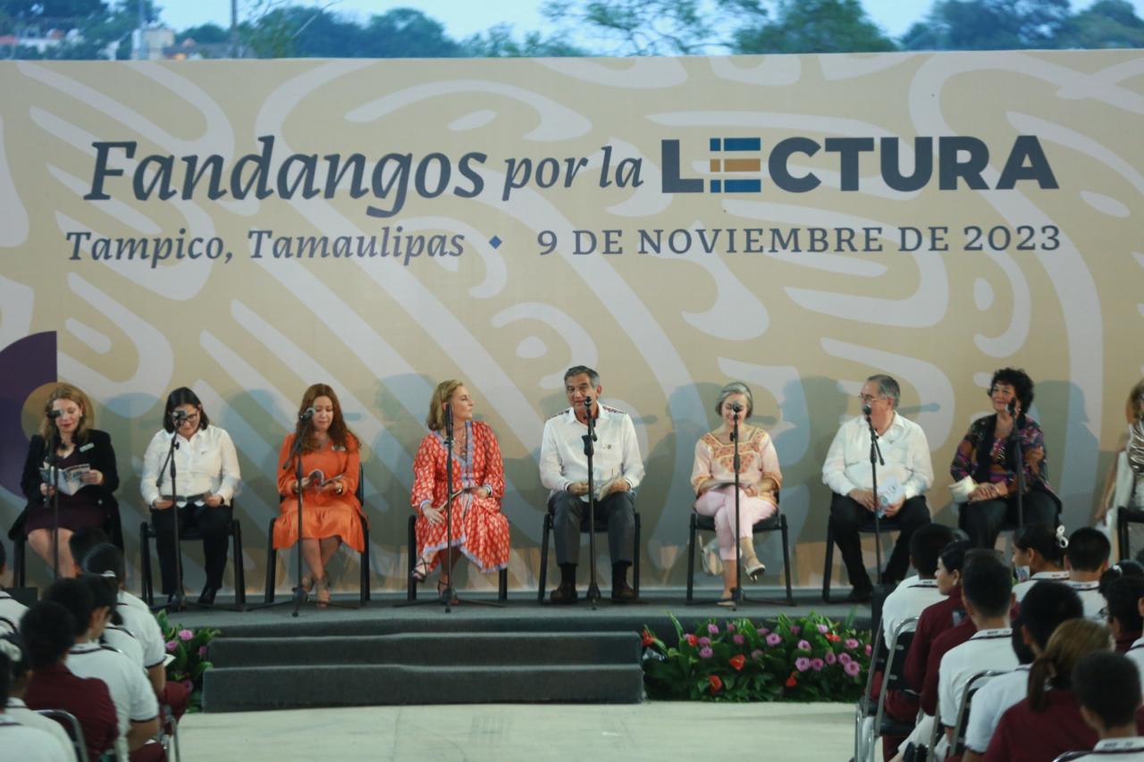 Tampico, Tamaulipas. - El gobernador Américo Villarreal Anaya llamó a fortalecer la Estrategia Nacional de Lectura y, ante la presencia de la escritora e investigadora Beatriz Gutiérrez Müller, participó en la edición número 23 de Fandangos por la Lectura, en la que se leyeron textos de poetas y escritoras contemporáneas.