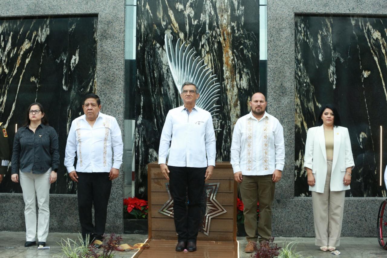 Acompañaron al gobernador en este evento: Héctor Joel Villegas González, secretario general de Gobierno; la diputada Úrsula Salazar Mujica, presidenta de la Junta de Coordinación Política del Congreso del Estado; el diputado Marco Antonio Gallegos, presidente de la Comisión de Seguridad Pública del Congreso y Lucía Aimé Castillo Pastor, secretaria de Educación.