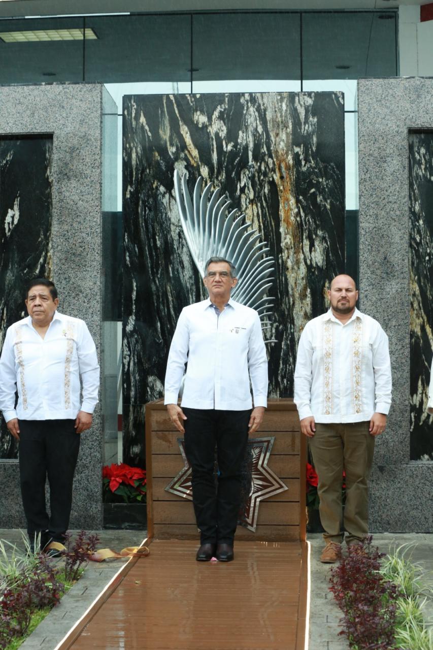 Además se rindió homenaje a Luis Franco González, quien cayó en cumplimiento de su deber, se disparó una salva de honor en memoria de los policías que han fallecido durante su desempeño y se develó el memorial con el que se rinde tributo a la entrega y sacrificio de los compañeros que sirvieron hasta el límite de entregar su vida por la seguridad y la paz de Tamaulipas.