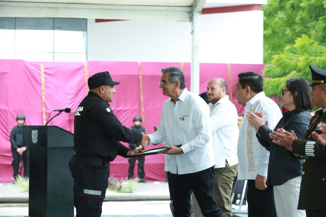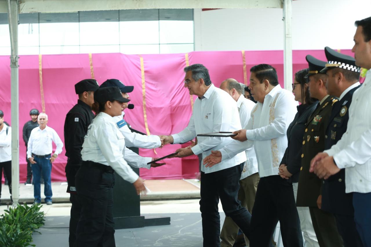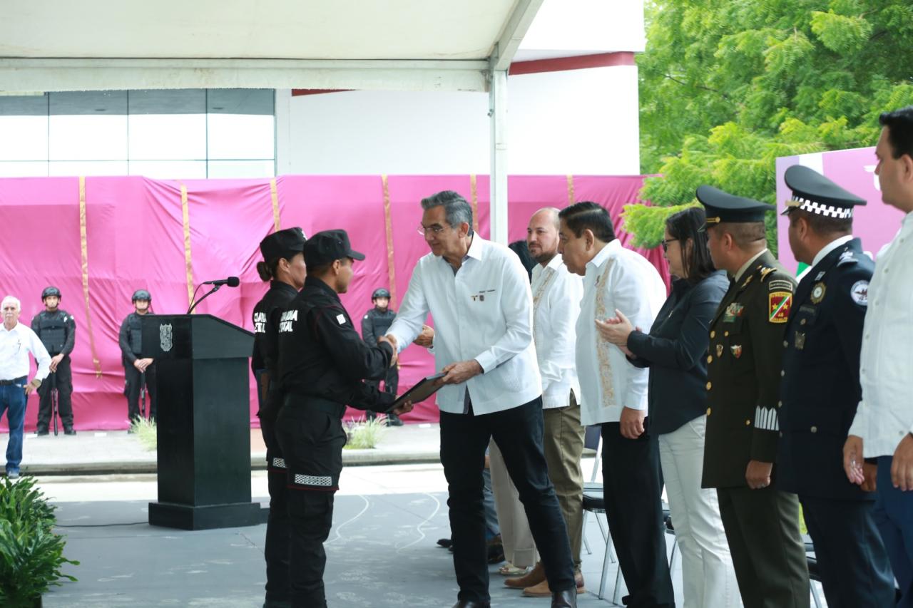 Acompañado por el secretario de Seguridad Pública, Sergio Hernando Chávez García, legisladores y funcionarios del gabinete estatal, el jefe del Ejecutivo presidió, en el Complejo Estatal de Seguridad Pública de esta capital, la graduación de 160 nuevos Guardias Estatales, 10 custodios, 21 elementos egresados del Curso Básico de Fuerzas Especiales y ocho elementos que aprobaron el Curso de Operaciones Aeromóviles.