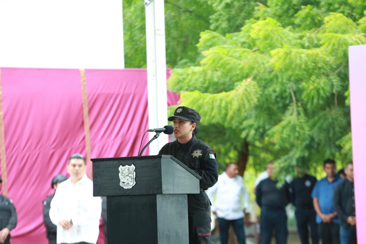 A nombre de los nuevos elementos de la Guardia Estatal, la oficial Rubí Escudero Busaj aseguró que gracias a los conocimientos y la instrucción recibida en la Universidad de Seguridad y Justicia están debidamente preparados para sumarse a las tareas de protección de las y los tamaulipecos.