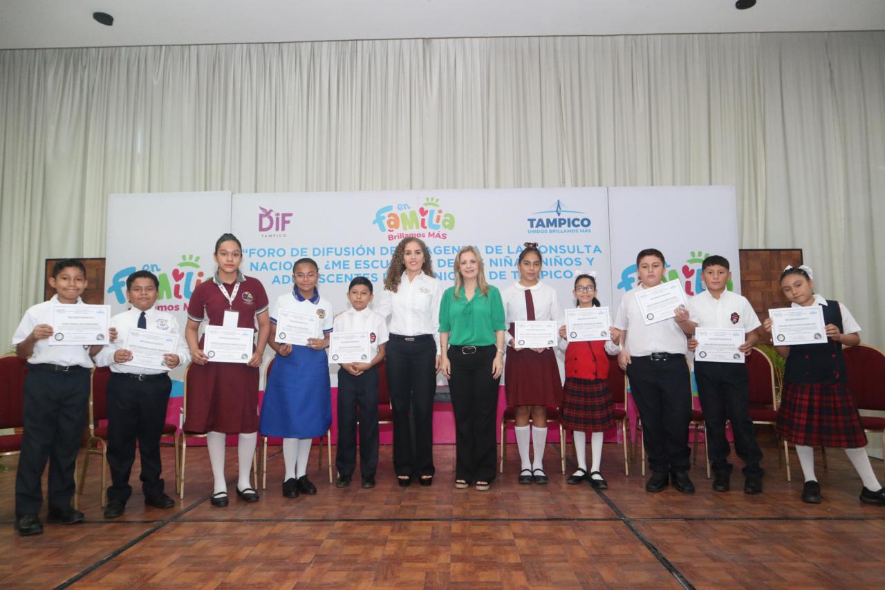 Con el propósito de generar mayor conciencia social y participación de la niñez en asuntos de interés público, el Sistema DIF Tampico llevó a cabo el Foro de Difusión de la Agenda de la Consulta Nacional ¿Me escuchas?, en la que participaron los niños que integran la Red Municipal de Impulsores de la Transformación.