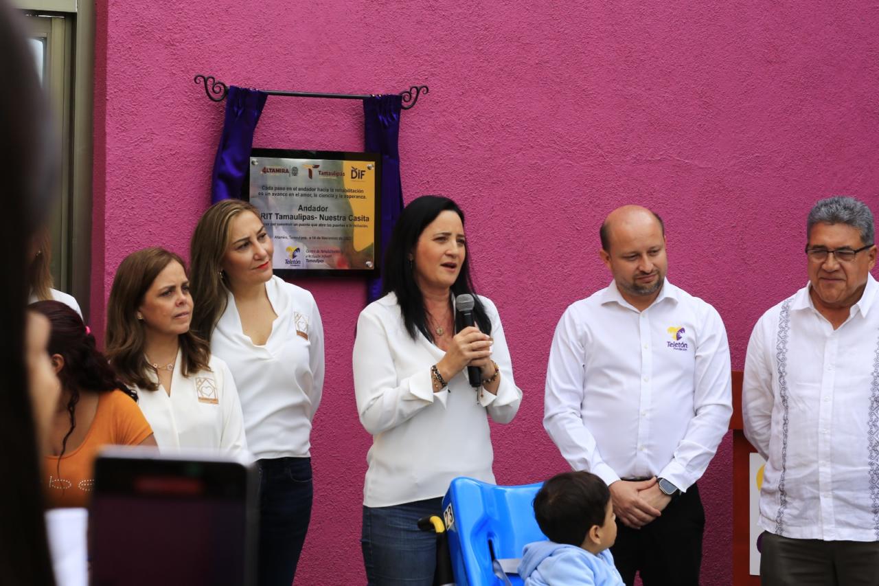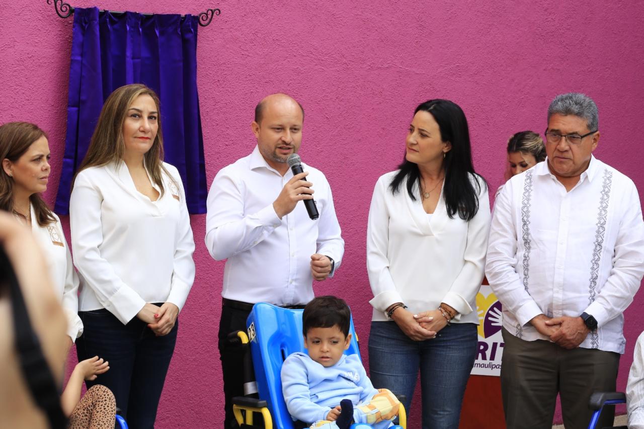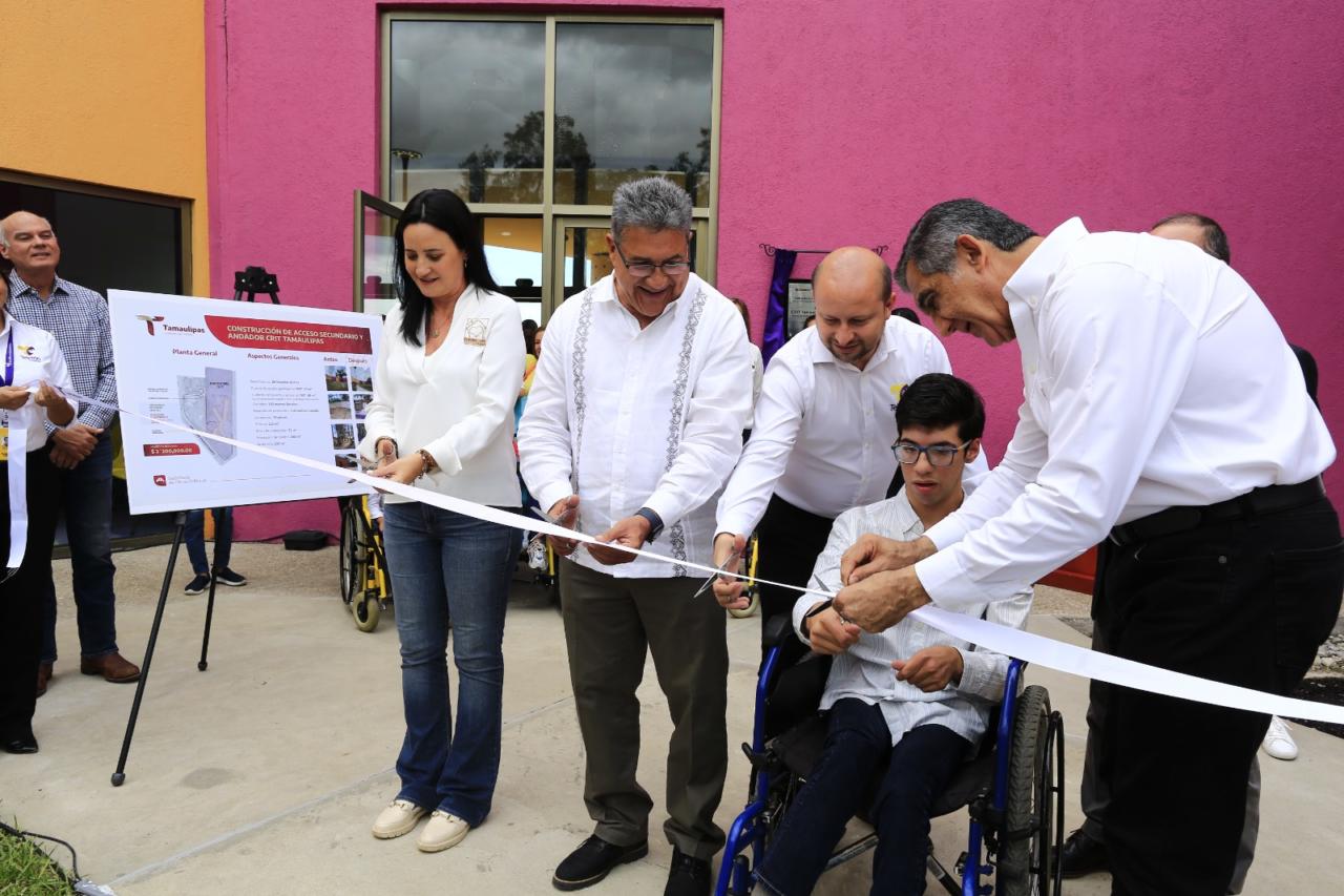 Altamira, Tamaulipas.- El gobernador Américo Villarreal Anaya entregó la construcción del acceso secundario y andador del albergue "Nuestra Casita" en el Centro de Rehabilitación e Inclusión Tamaulipas (CRIT), obra que representa un sueño cumplido luego de 10 años, para los más de mil niñas y niños que acuden a este complejo a recibir terapias.