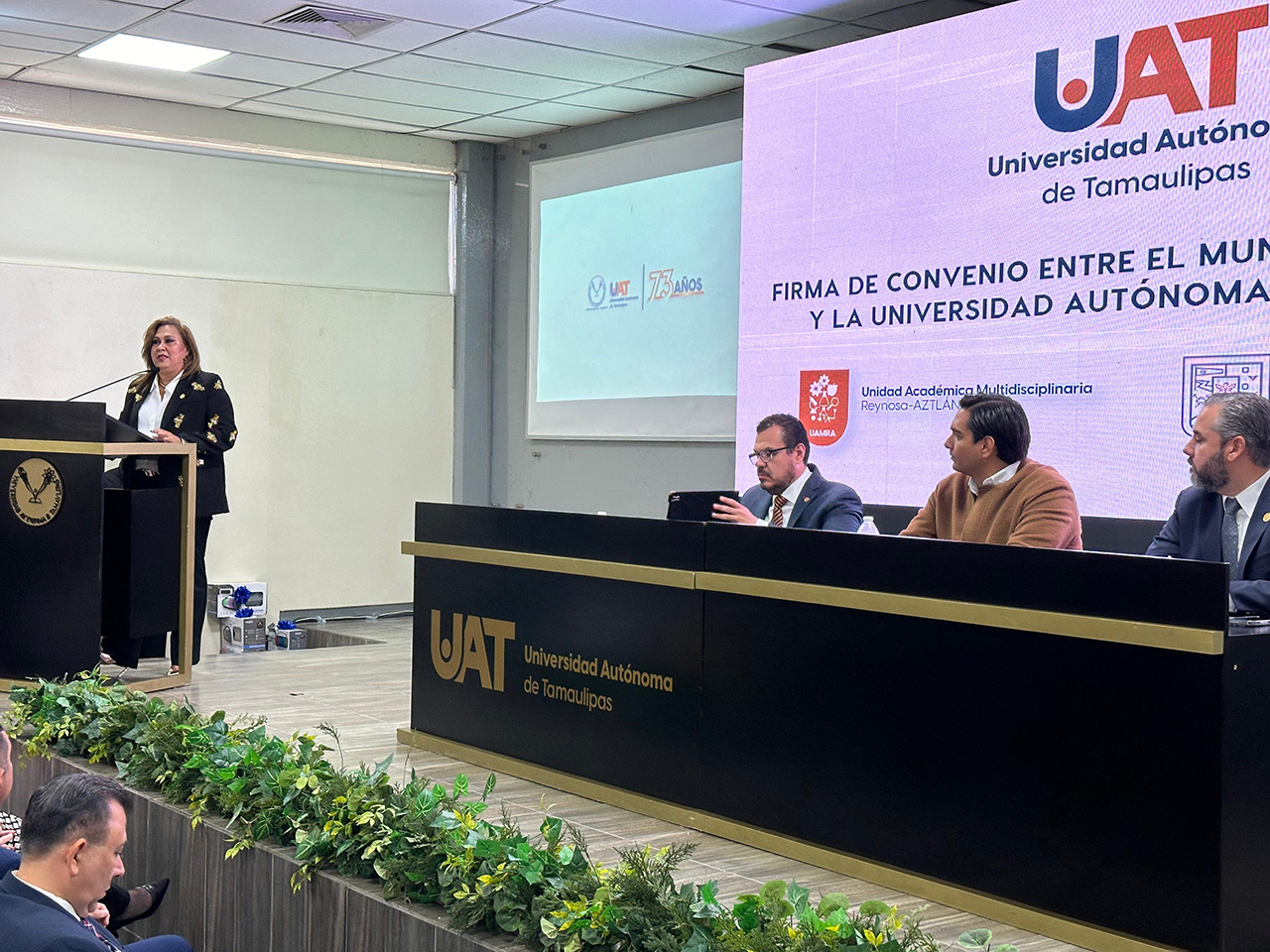 Por su parte, el alcalde de Reynosa, Lic. Carlos Víctor Peña Ortiz agradeció a la UAT por sumarse a los proyectos de crecimiento económico y social que plantea su administración, para lo cual, destacó, es esencial contar con una institución de educación superior fuerte como es la Máxima Casa de Estudios de Tamaulipas.