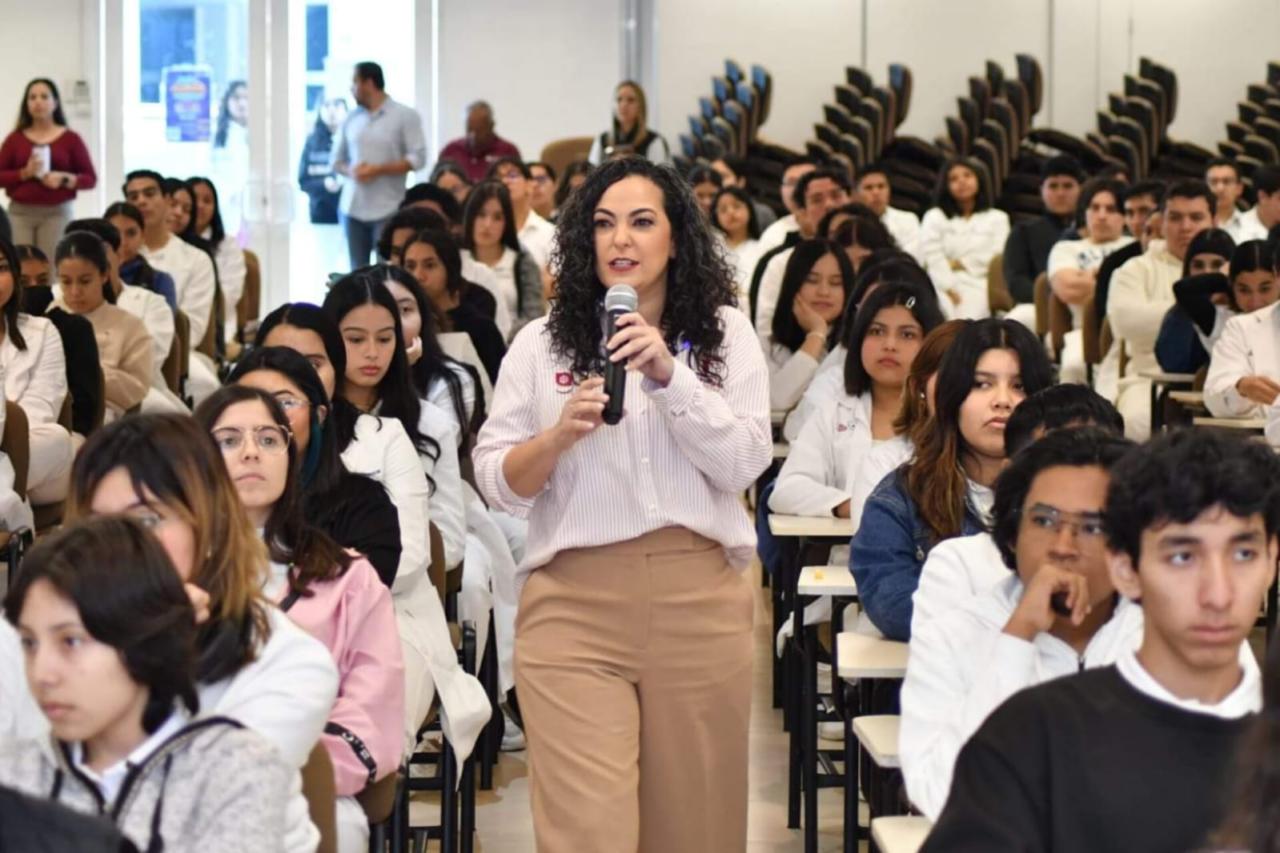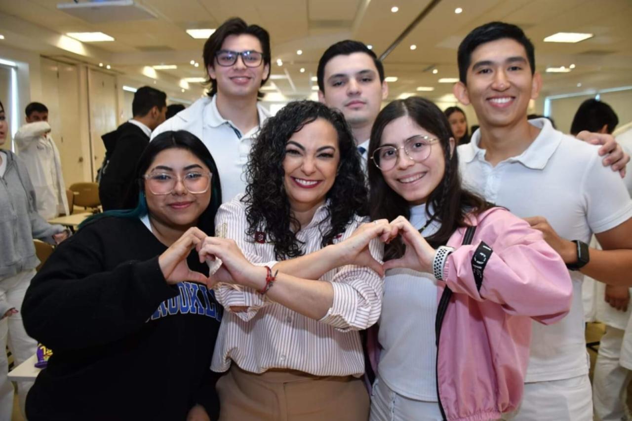 La funcionaria estatal dijo ante la comunidad estudiantil del campus de la Salud en La Salle Victoria, que las y los jóvenes son parte fundamental de la agenda del gobernador Américo Villarreal Anaya, lo cual incluye la participación de mesas legislativas para generar una Ley de la Juventud, así como espacios de cuidado al medio ambiente, foros de la salud mental y espacios de participación en la que su voz es lo más importante.