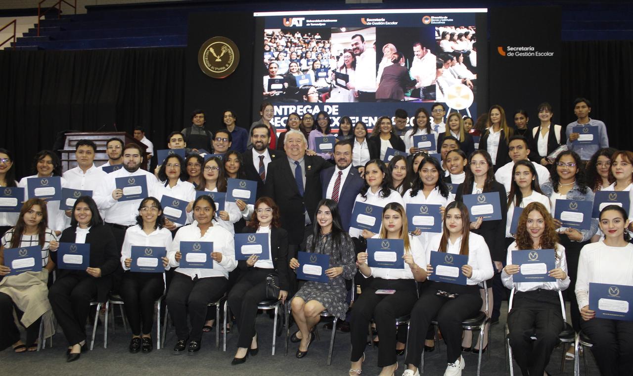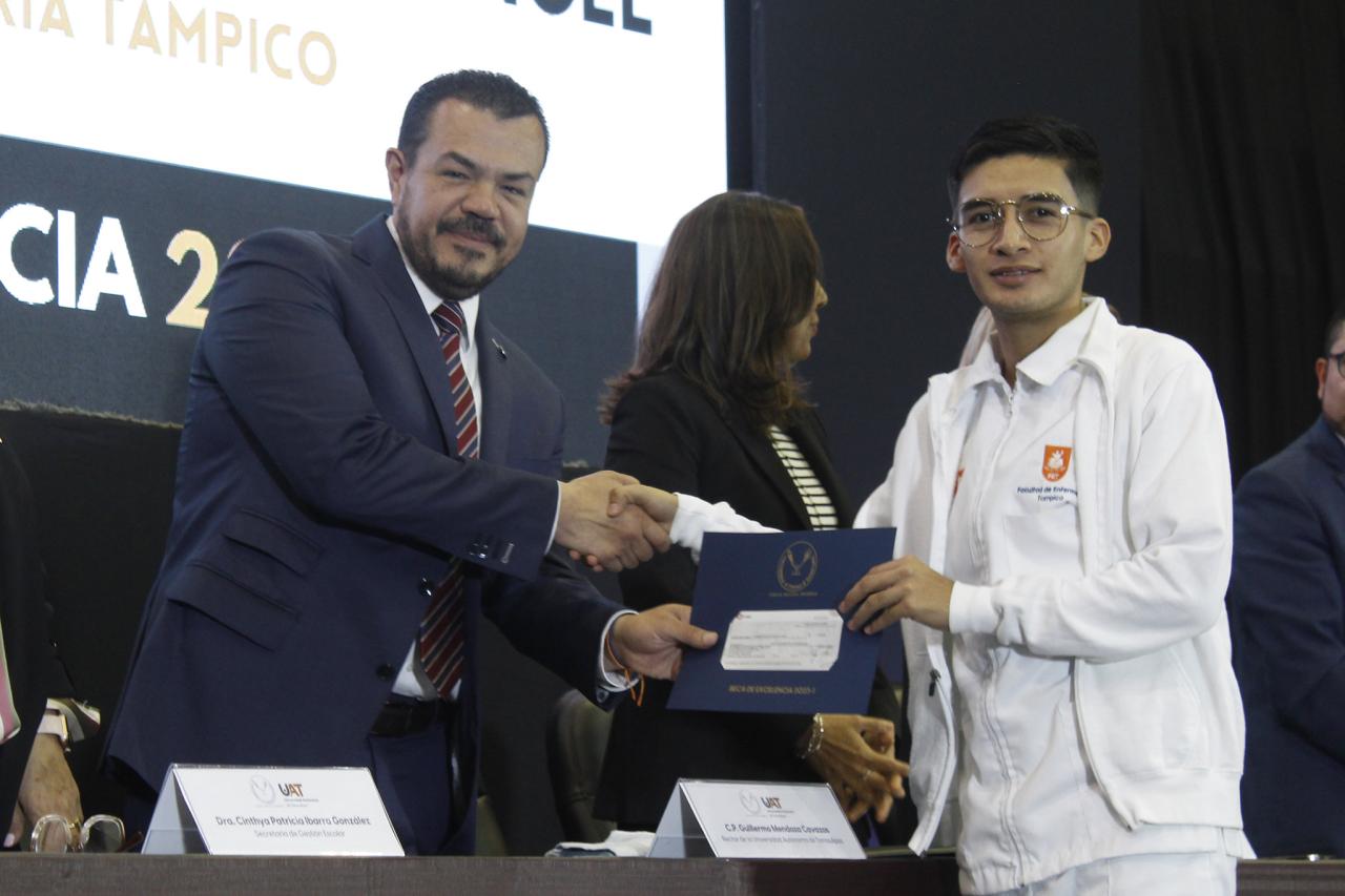 En evento celebrado en el Gimnasio Olímpico de Tampico el rector entregó estímulos económicos a 180 estudiantes de la zona sur; y de manera simultánea, se entregó este reconocimiento en las sedes académicas de las zonas centro y norte del estado.