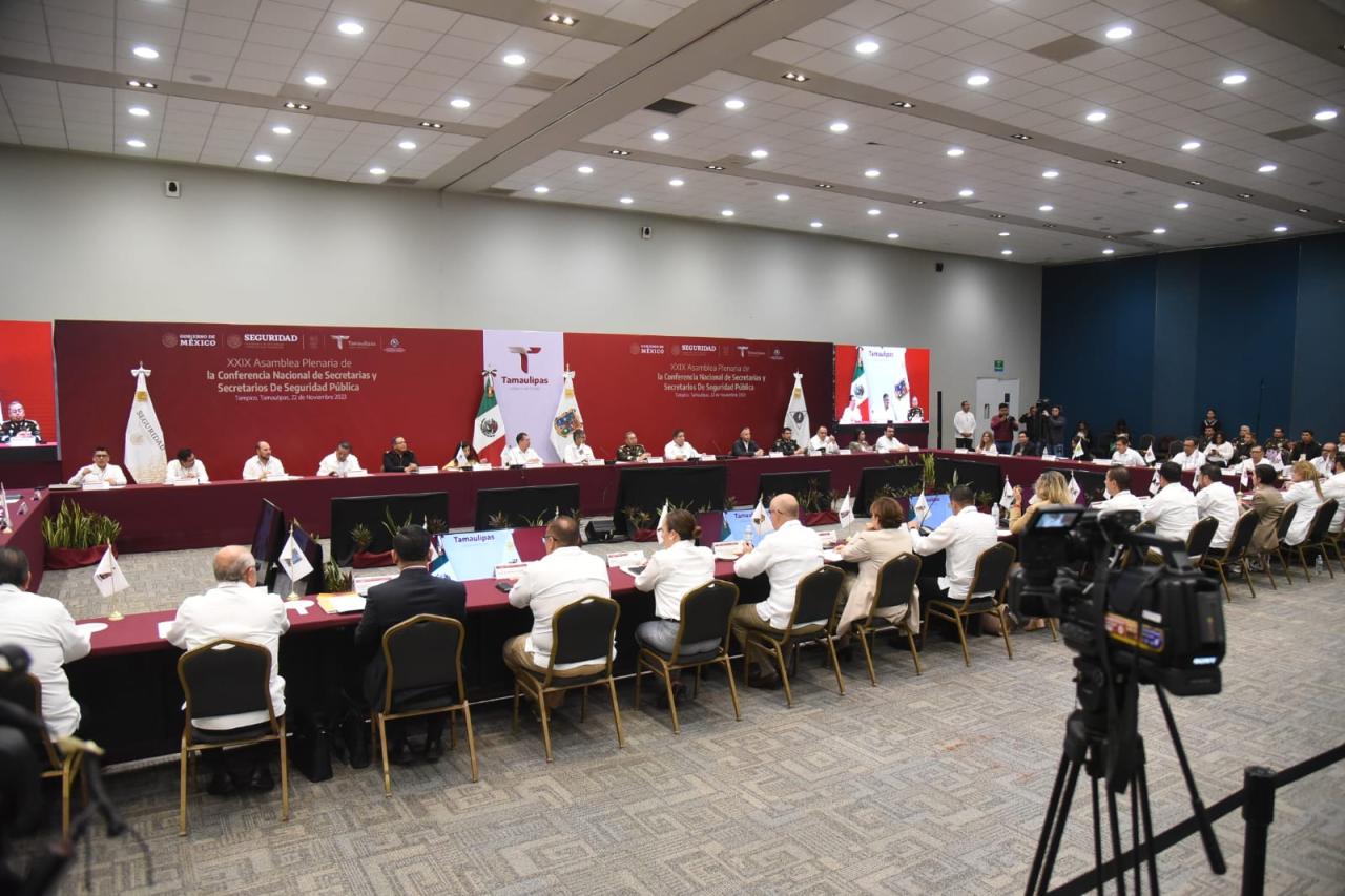 Durante la Asamblea Plenaria, moderada por el Subsecretario de Seguridad Pública de la Secretaría de Seguridad y Protección Ciudadana, Luis Rodríguez Bucio y con la participación virtual de la titular de Seguridad y Protección Ciudadana del Gobierno Federal, Rosa Icela Rodríguez, los Secretarios de Seguridad de las diferentes entidades de México expusieron una serie de propuestas para enfrentar con mayor eficacia a la delincuencia y contribuir a la construcción de Estados y ciudades seguras.