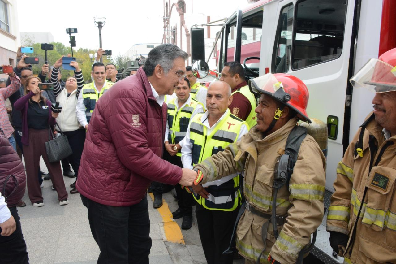 Ciudad Victoria, Tamaulipas. - Para que las corporaciones de auxilio cuenten con equipo y unidades que permitan brindar ayuda a la población en situaciones de emergencia, el gobernador de Tamaulipas, Américo Villarreal Anaya hizo entrega de un camión contra incendios a la Coordinación Estatal de Protección Civil de Tamaulipas.