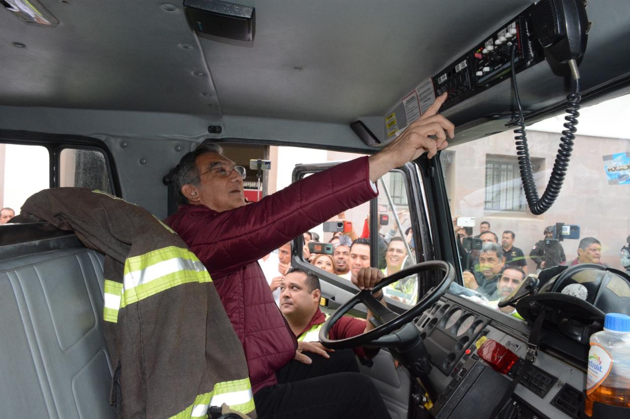 Tras presidir este lunes, la reunión de la Mesa de Seguridad en Palacio de Gobierno, el mandatario abordó y puso en marcha esta unidad de bomberos, a la par de que hizo sonar la sirena de emergencia, para después hacer entrega de las llaves al coordinador de Protección Civil, Luis Gerardo González de la Fuente.