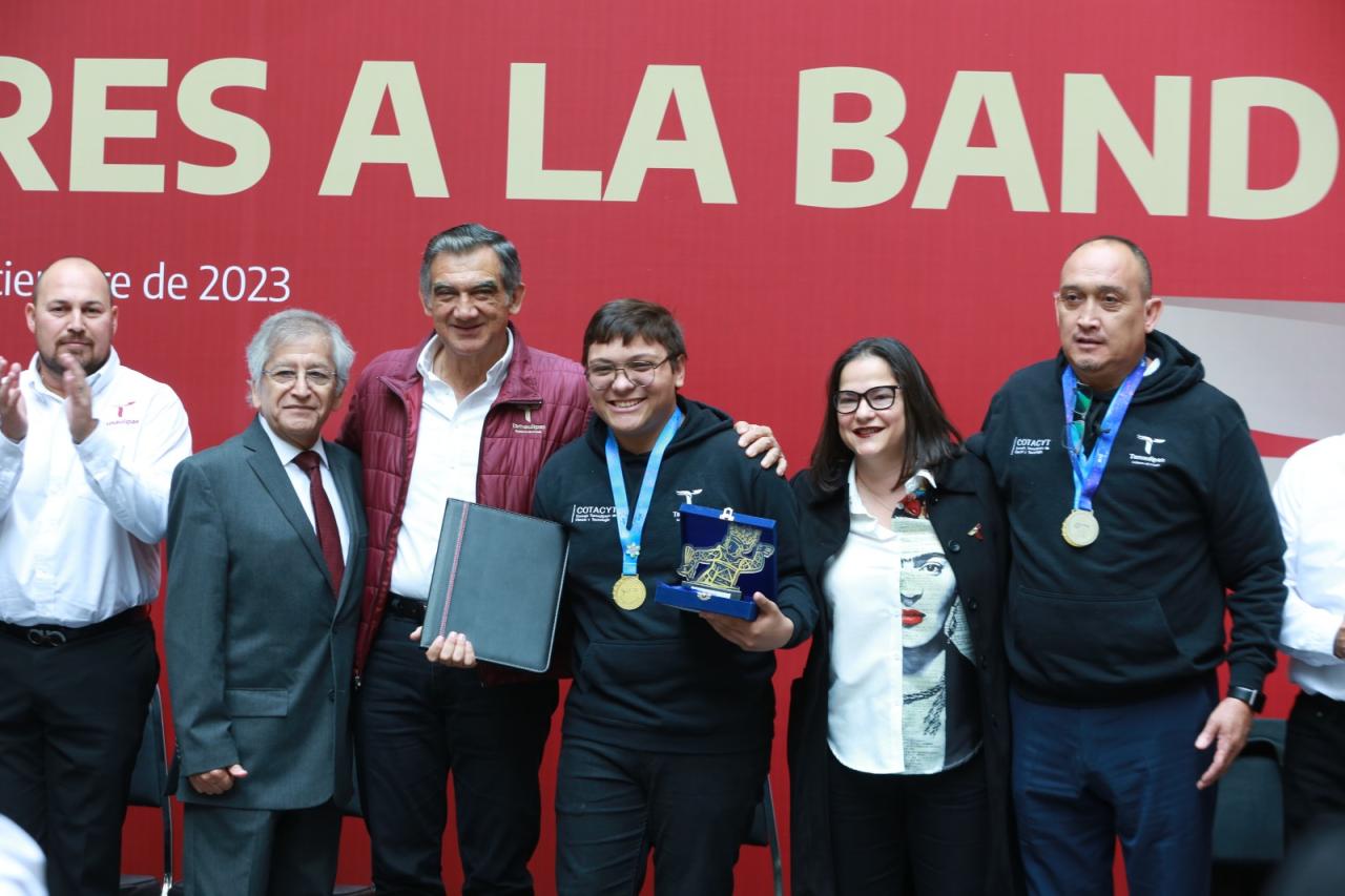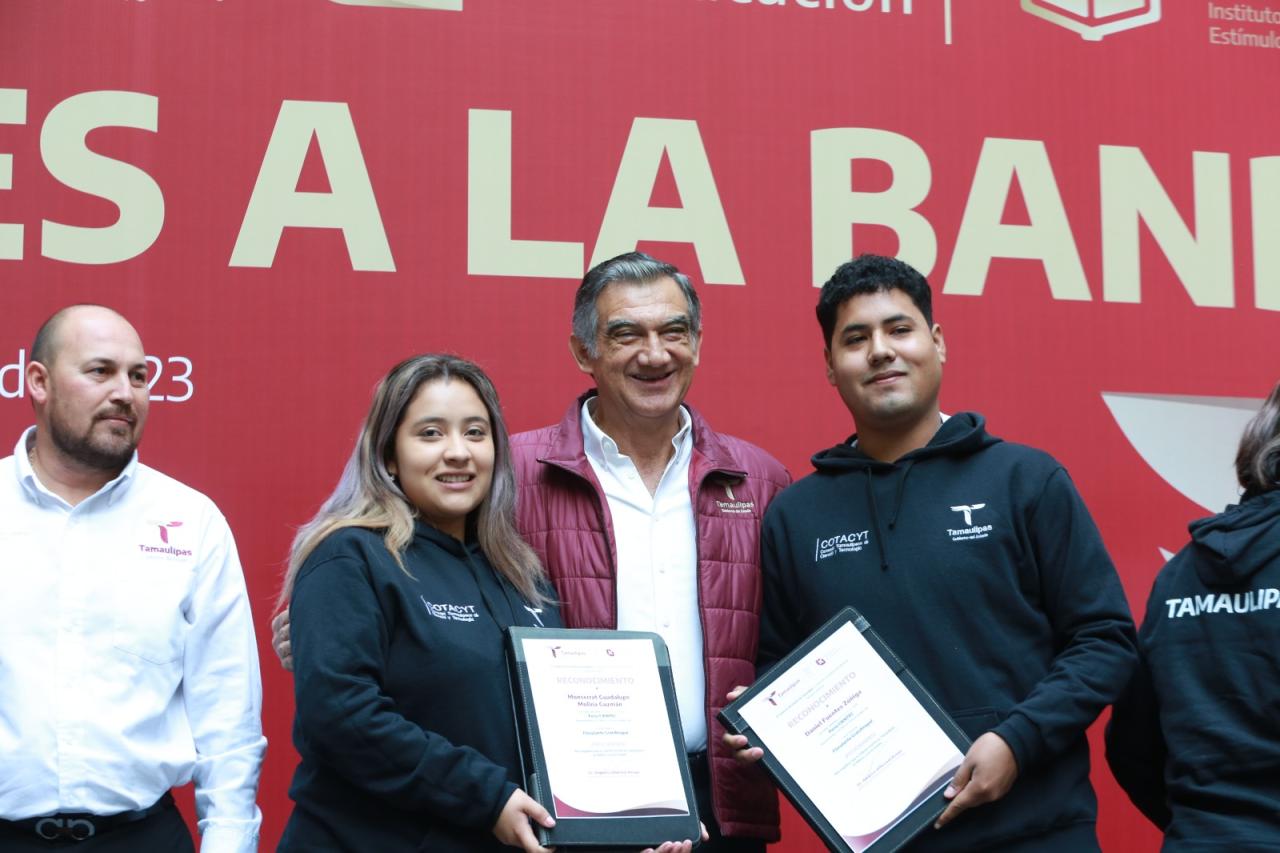 Durante la ceremonia, el gobernador hizo entrega de reconocimientos a los alumnos de la secundaria No. 1 de Ciudad Mante, de la Universidad Tecnológica de Matamoros y de la Universidad Politécnica de Victoria, ganadores de la medalla de oro en la International Science and Invention Fair, realizada en Bali Indonesia, así como a estudiantes del Conalep Matamoros que conquistaron la medalla de plata en la Feria BUCAIMSEF realizada en Turquía y a los alumnos del Tecnológico de Victoria, unidad a distancia Tula, ganadores de la Medalla de Oro en la Feria CIENTEC, realizada en Lima, Perú.