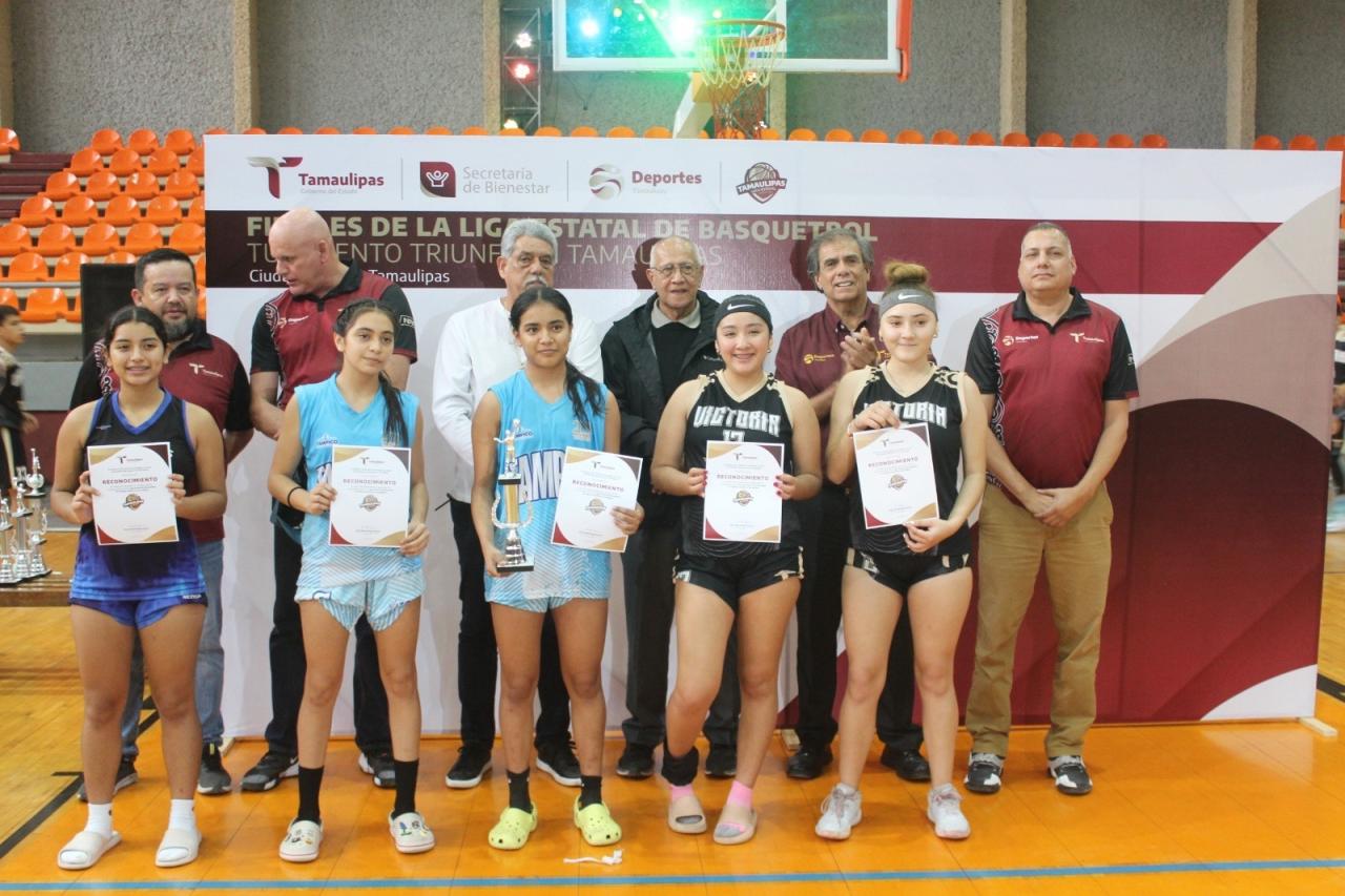 Ciudad Victoria, Tamaulipas.- Después de dos días de grandes partidos, se definieron a las y los campeones de la Liga de Talentos Deportivos de Básquetbol 2023, primera edición que fue todo un éxito y que contó con participación de una buena cantidad de equipos de todo Tamaulipas en sus diferentes fases municipales y regionales.
