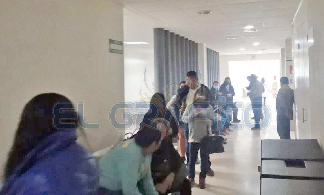 Desde temprana hora de la mañana, más de cien personas se vieron obligadas a permanecer fuera del hospital, soportando las inclemencias del tiempo durante varias horas.