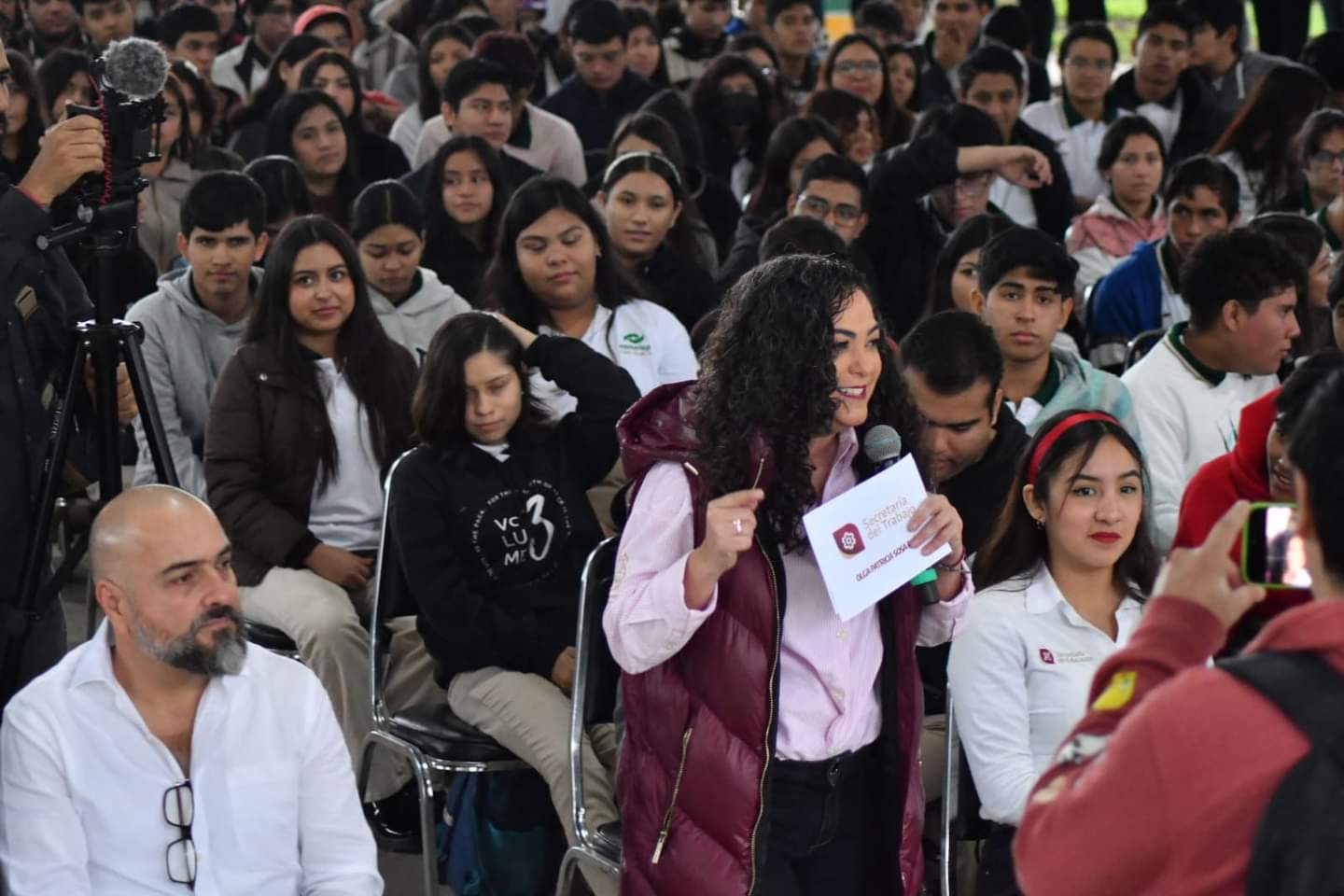 Ciudad Victoria, Tamaulipas. - La secretaria del Trabajo y Previsión Social del gobierno de Américo Villarreal Anaya en el Conalep plantel Victoria, hizo un recuento de los logros en materia del trabajo durante 2023, y el impulso en el proceso de vinculación al mercado laboral con las instituciones educativas.