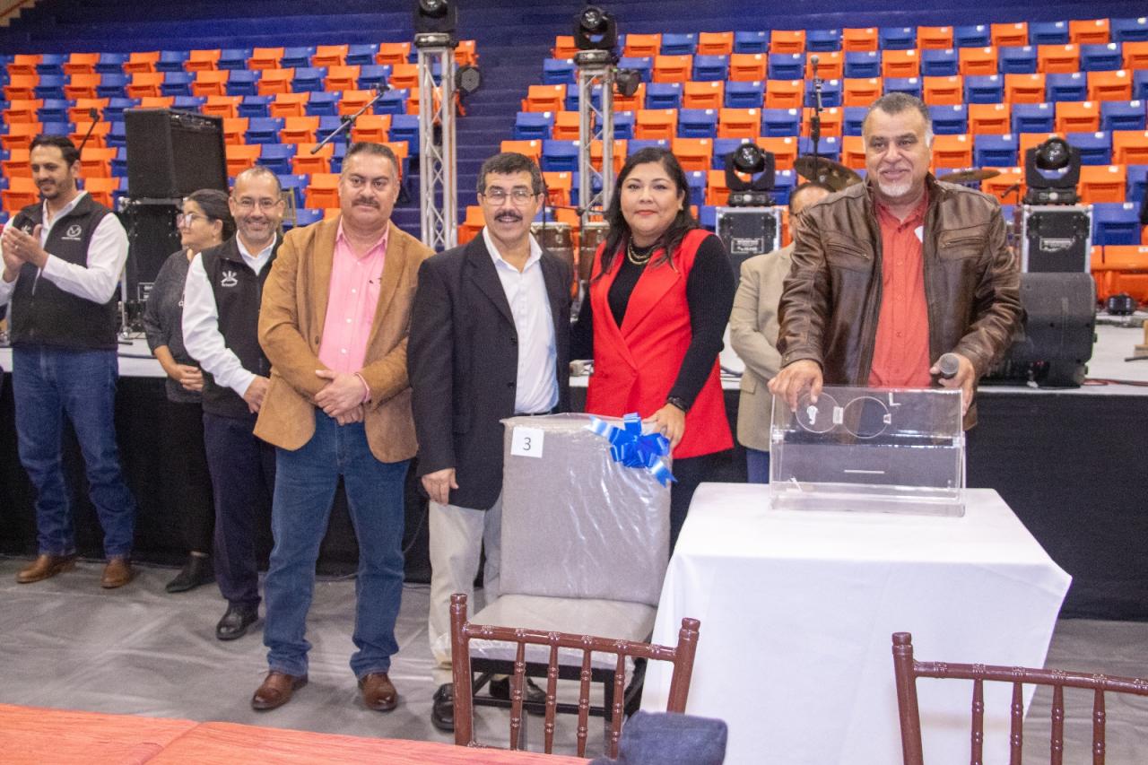 Durante el evento realizado en el Gimnasio Multidisciplinario, el rector estuvo acompañado del secretario de Administración, Marco Antonio Bastarse Contreras; y del secretario general del Sindicato Único de Trabajadores de la UAT (SUTUAT), Oscar Valdez Ávila.