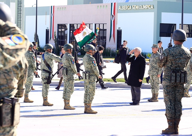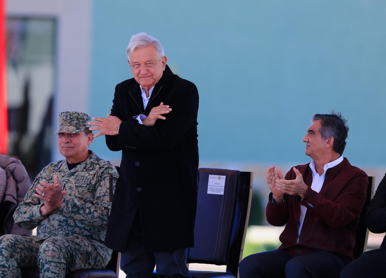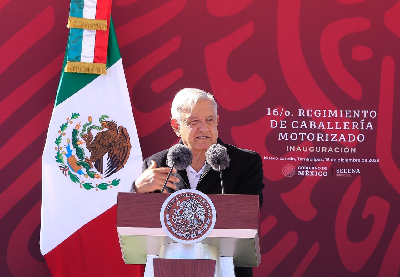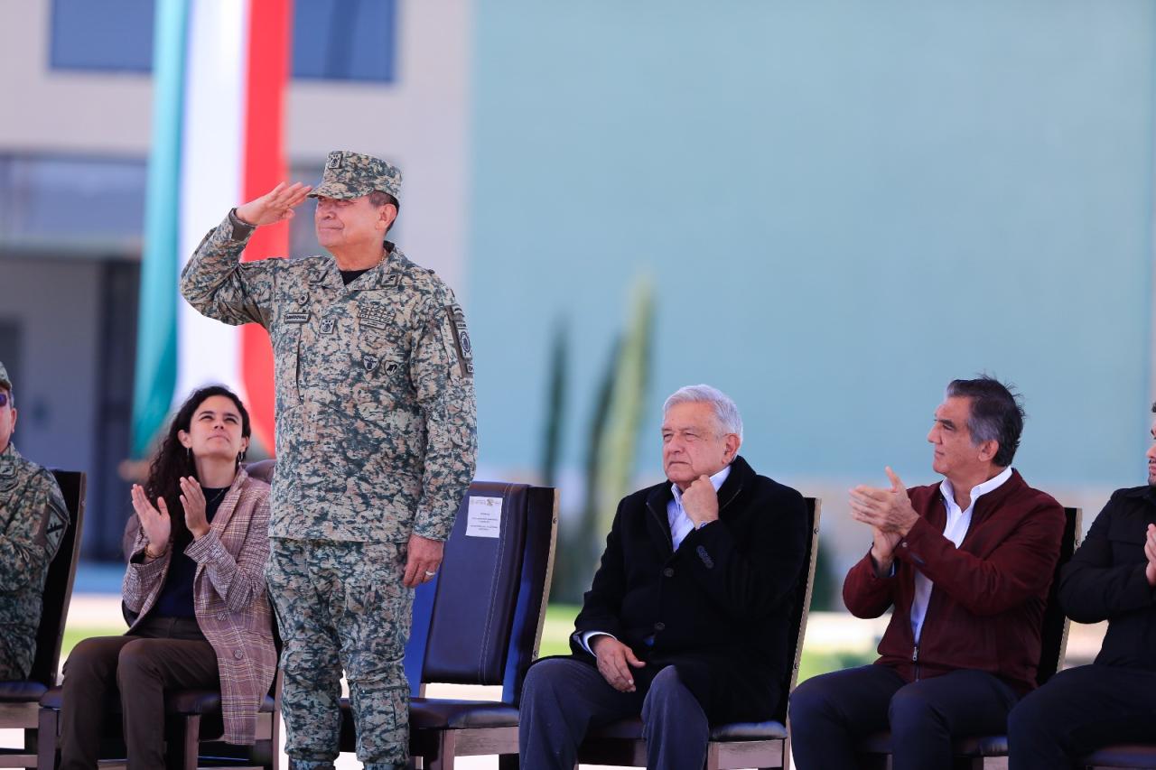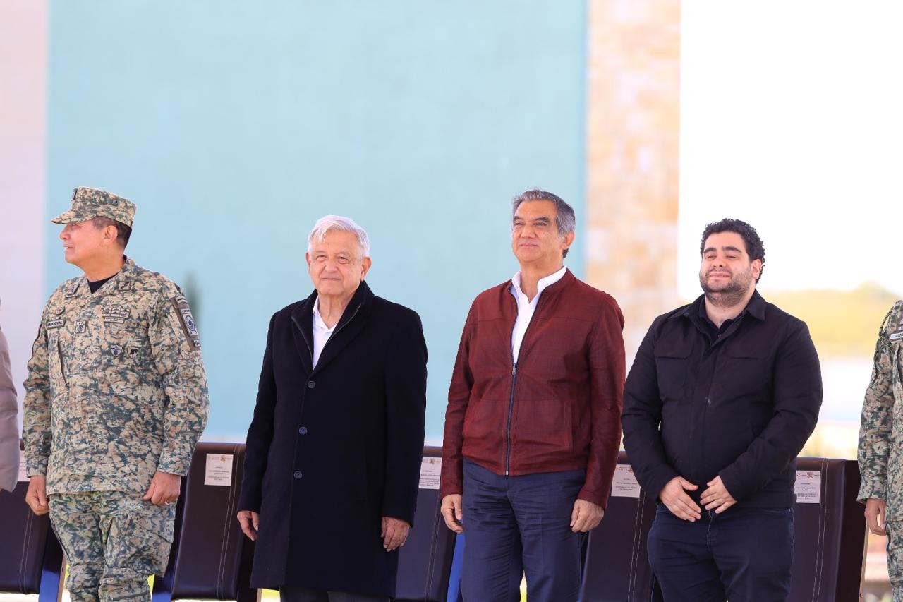 Nuevo Laredo, Tamaulipas.- El presidente Andrés Manuel López Obrador inauguró este día, las instalaciones del 16o. Regimiento de Caballería Motorizada en Nuevo Laredo, acto en el que junto al gobernador del estado, Américo Villarreal Anaya, reiteró todo su apoyo para garantizar la paz y la tranquilidad de las y los tamaulipecos.