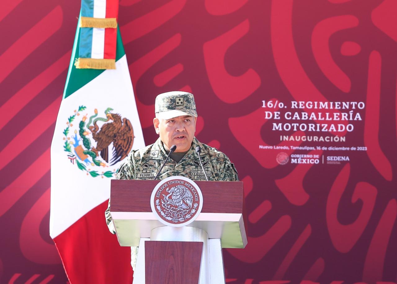 Por su parte, el coronel Isaac Edmundo Alvarado Ferreti, comandante del 16o. Regimiento de Caballería Motorizada en Nuevo Laredo explicó que la construcción de las instalaciones de este Regimiento, su unidad habitacional con 65 viviendas y una Guarnición Militar, comprende además un Centro de Justicia, puente vehicular, redes, urbanización y obras complementarias en un espacio de 35.5 hectáreas, trabajos que dijo, fueron materializados con apego a las políticas de austeridad, transparencia, honradez y legalidad del gobierno federal.