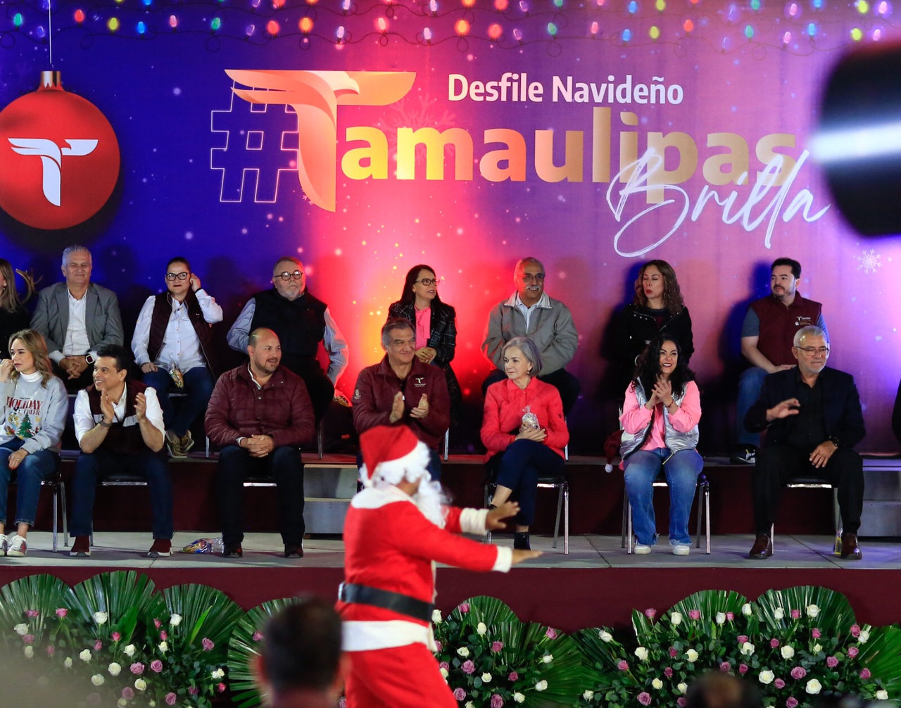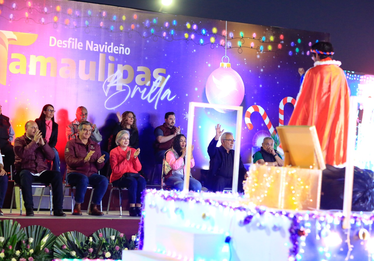 Previamente, en la avenida Francisco I. Madero, el gobernador y la presidenta del DIF presenciaron el Desfile Navideño Tamaulipas Brilla que contó con la participación de carros alegóricos de 22 dependencias del Gobierno del Estado y organismos públicos descentralizados, así como empresas automovilísticas y clubes de autos antiguos.